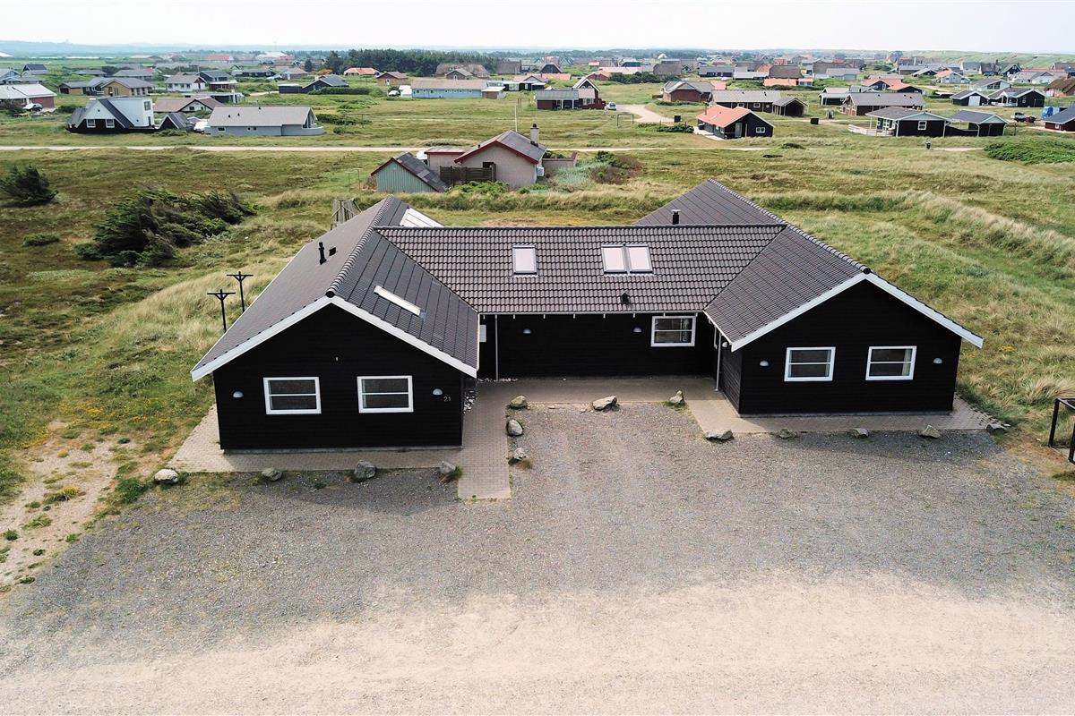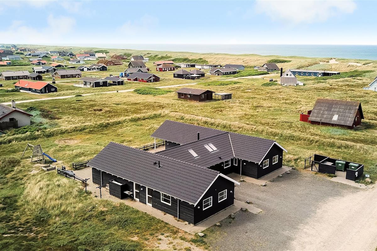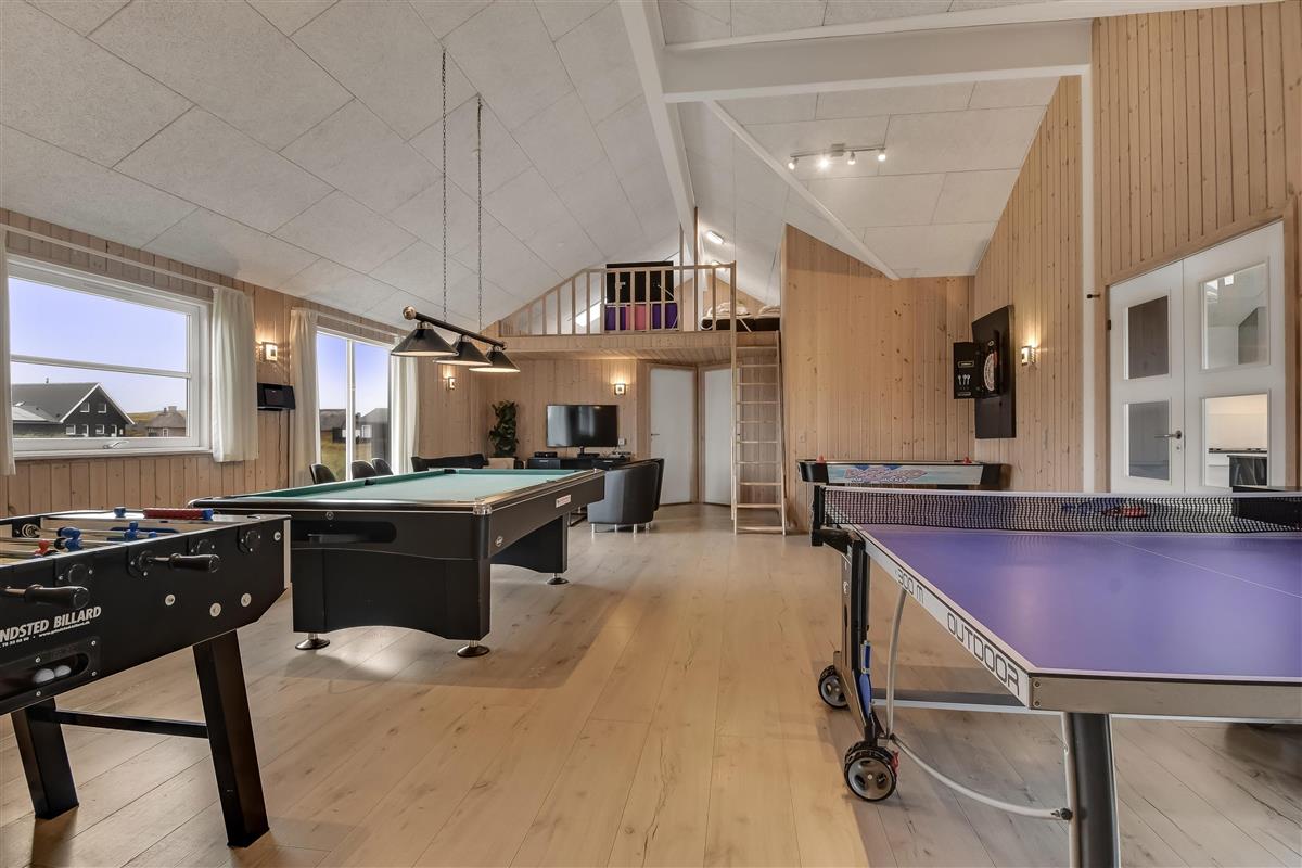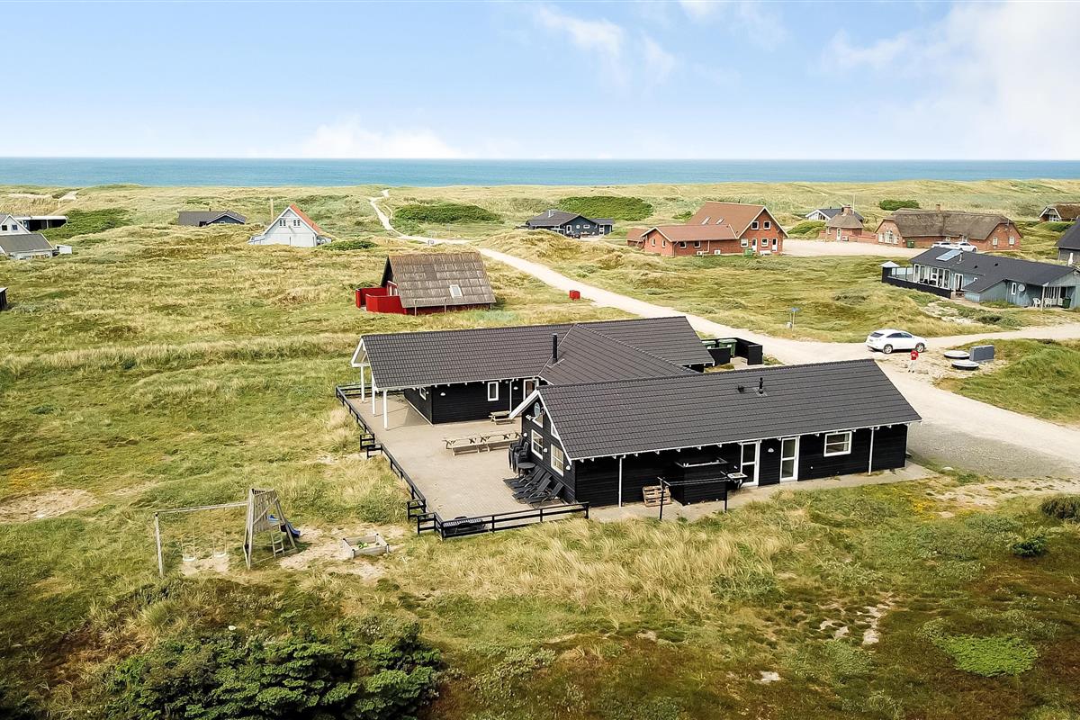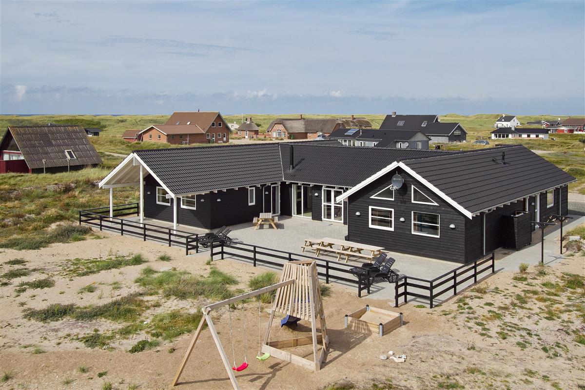 Neues und schön eingerichtetes 370 m² Ferienhaus mit 8 Schlafzimmern, ausgestattet mit : 1 DB + 1 DB + 1 DB + 1 DB + 1 DB + 1 DB + 2 EB + 2 EB. Des Weiteren gibt es 2 große Schlafböden (2 x Hems) mit jeweils 3 Schlafplätzen und einen herrlichen Spielehems. Die Schlafböden sind nicht abschließbar und auch Erwachsene können hier bequem übernachten. Das Haus verfügt über eine gut ausgestattete Küche, u. a. 2 elektrische Cerankochfelder, 2 Einbaubacköfen, große Dunstabzugshaube, 2 Geschirrspüler, Mikrowelle, großer Kühlschrank und separater Gefrierschrank (250 L). Alle 22 Bewohner können sich um den großen Esstisch des Hauses versammeln, der auch zum Spielen und Unterhalten einlädt. Von hier haben Sie durch die großen Fenster einen freien Blick in den Poolraum und auf die großen Dünen, die die einmalige Lage des Hauses unterstreichen. Entspannen Sie sich in den bequemen Qualitätsmöbeln vor dem wärmenden Holzofen in gemütlicher Atmosphäre. 5 x TV mit dänischem und deutschem Programm, davon ein TV mit Blue Ray Player. Es gibt Fliesenboden mit Fußbodenheizung im ganzen Haus und Holzboden in den Schlafzimmern. Große Wellness- und Poolabteilung mit 5-6-Personen-Whirlpool mit Massagedüsen sowie einer schönen Sauna. Der Pool ist 22 m² groß mit Rutsche und Gegenstromanlage. Der Aktivitätsraum umfasst: Tischfußball, Tischtennis, Dart, Billard, Airhockey und TV mit 2 verschiedenen Spielekonsolen (Playstation 3 und Xbox). Waschmaschine und Wäschetrockner sind selbstverständlich vorhanden. 4 Badezimmer mit Toilette, Dusche, Waschbecken und Fußbodenheizung. Für Kinder gibt es 3 Hochstühle. Max. 2 Haustiere sind erlaubt. Keine Vermietung an Jugendgruppen. Freier Zugang zum Harboøre Center. Kaution Wintersaison EUR 800 und Sommersaison EUR 500. Wenn Sie ein Elektroauto oder einen Plug-in-Hybrid haben, verfügt das Haus über eine Ladebox.