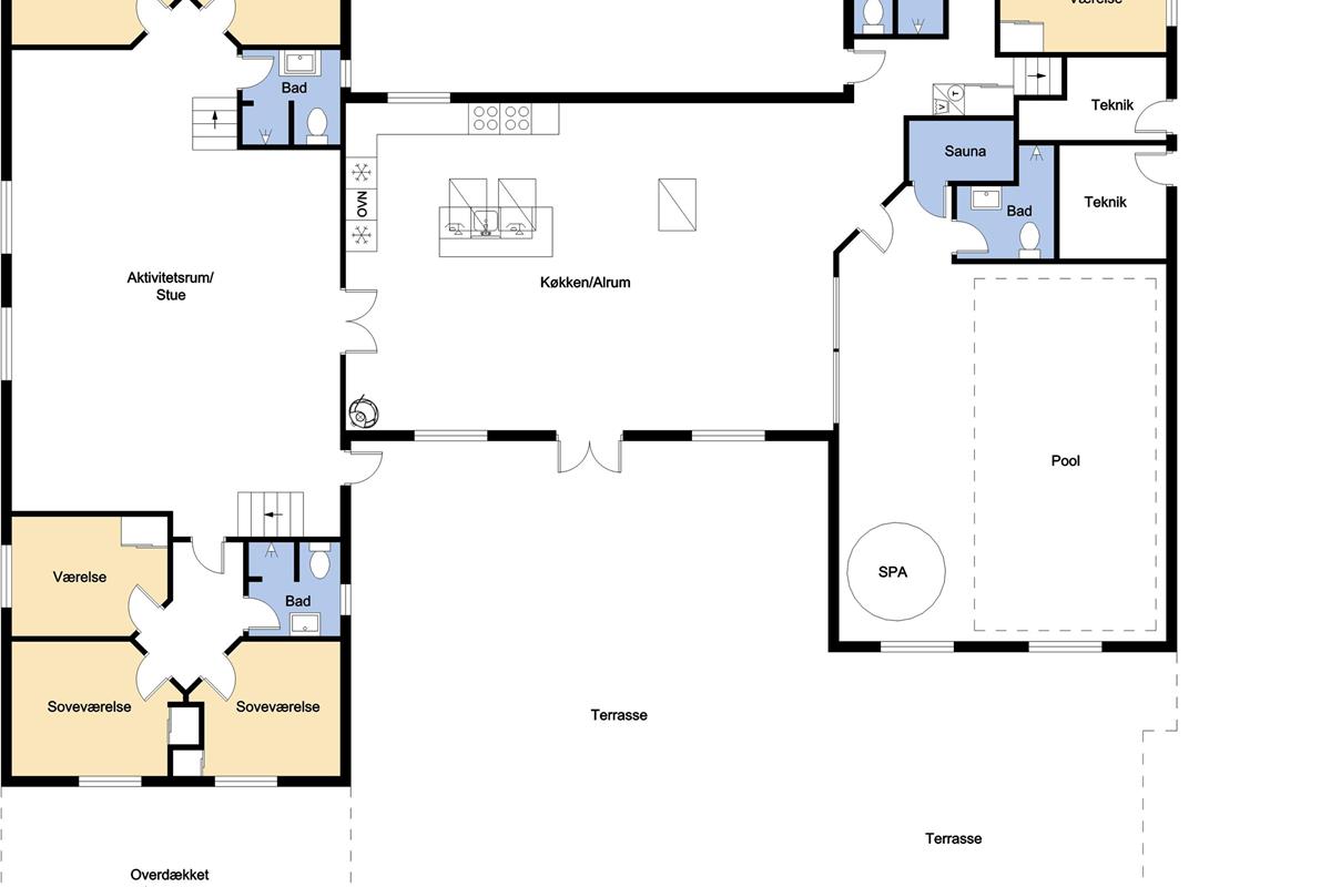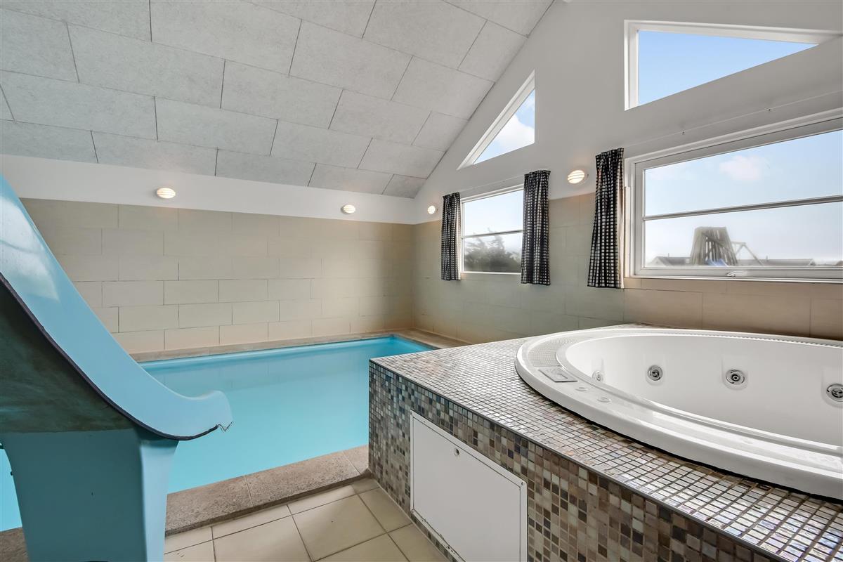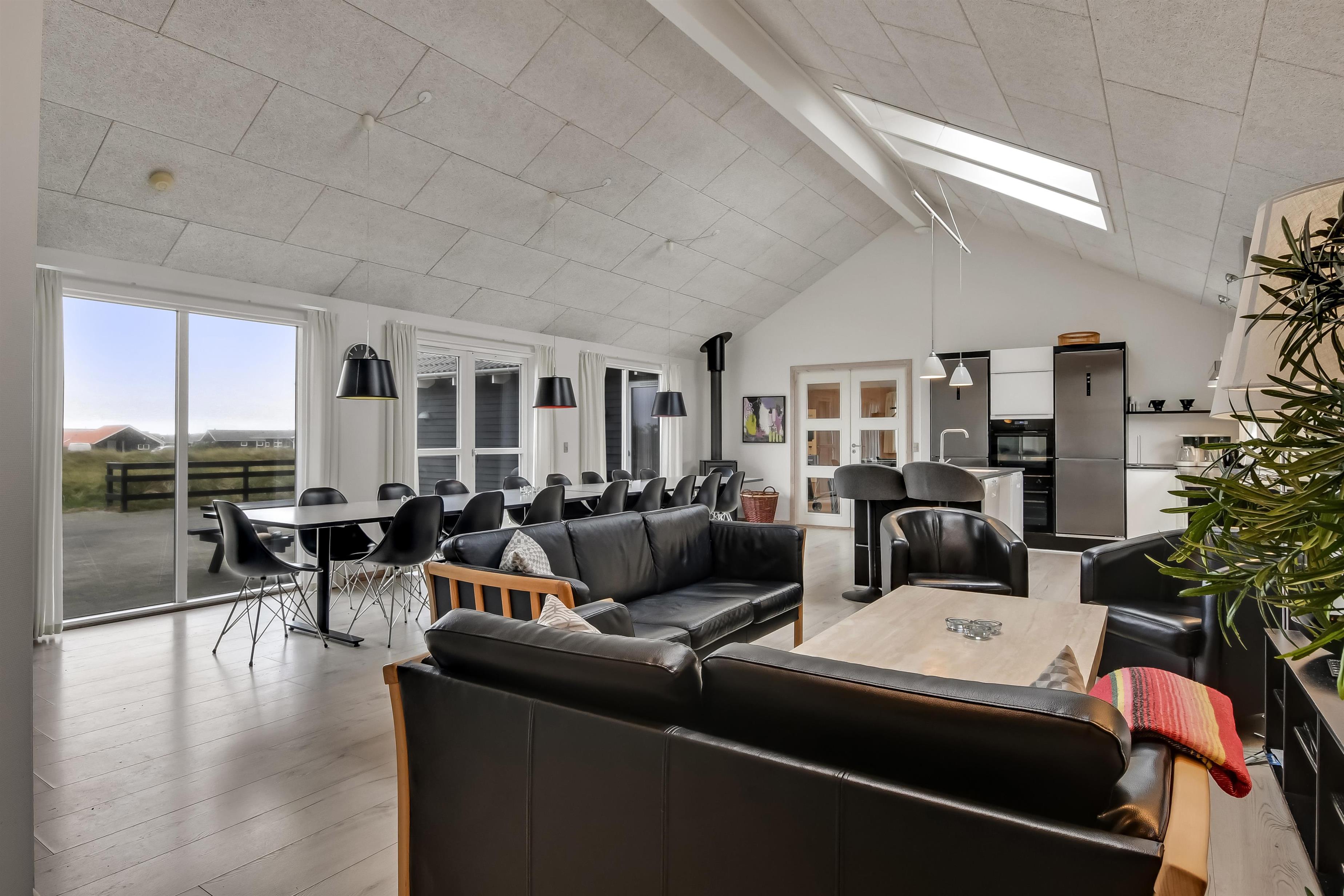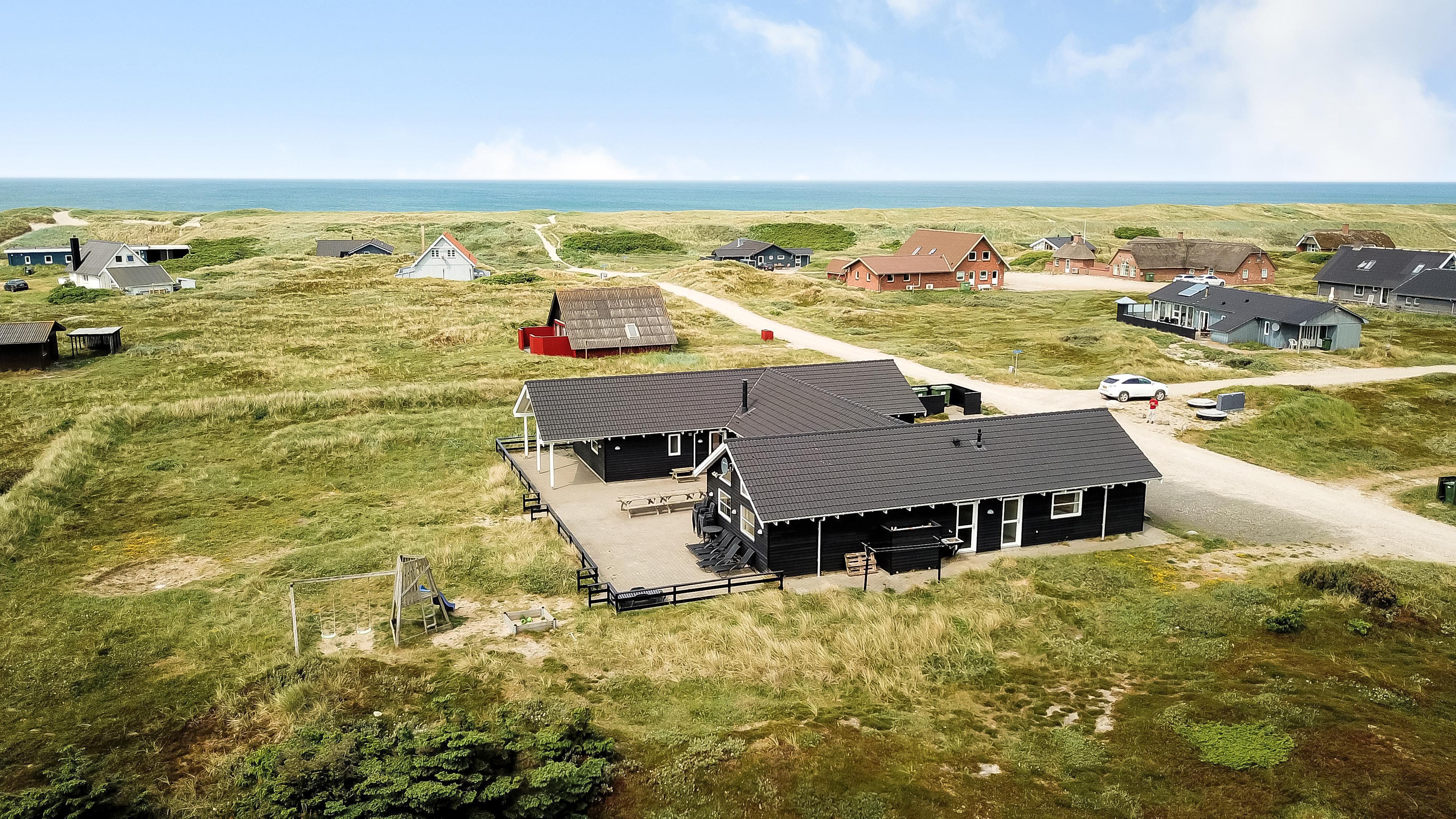 Neues und schön eingerichtetes 370 m² Ferienhaus mit 8 Schlafzimmern, ausgestattet mit : 1 DB + 1 DB + 1 DB + 1 DB + 1 DB + 1 DB + 2 EB + 2 EB. Des Weiteren gibt es 2 große Schlafböden (2 x Hems) mit jeweils 3 Schlafplätzen und einen herrlichen Spielehems. Die Schlafböden sind nicht abschließbar und auch Erwachsene können hier bequem übernachten. Das Haus verfügt über eine gut ausgestattete Küche, u. a. 2 elektrische Cerankochfelder, 2 Einbaubacköfen, große Dunstabzugshaube, 2 Geschirrspüler, Mikrowelle, großer Kühlschrank und separater Gefrierschrank (250 L). Alle 22 Bewohner können sich um den großen Esstisch des Hauses versammeln, der auch zum Spielen und Unterhalten einlädt. Von hier haben Sie durch die großen Fenster einen freien Blick in den Poolraum und auf die großen Dünen, die die einmalige Lage des Hauses unterstreichen. Entspannen Sie sich in den bequemen Qualitätsmöbeln vor dem wärmenden Holzofen in gemütlicher Atmosphäre. 5 x TV mit dänischem und deutschem Programm, davon ein TV mit Blue Ray Player. Es gibt Fliesenboden mit Fußbodenheizung im ganzen Haus und Holzboden in den Schlafzimmern. Große Wellness- und Poolabteilung mit 5-6-Personen-Whirlpool mit Massagedüsen sowie einer schönen Sauna. Der Pool ist 22 m² groß mit Rutsche und Gegenstromanlage. Der Aktivitätsraum umfasst: Tischfußball, Tischtennis, Dart, Billard, Airhockey und TV mit 2 verschiedenen Spielekonsolen (Playstation 3 und Xbox). Waschmaschine und Wäschetrockner sind selbstverständlich vorhanden. 4 Badezimmer mit Toilette, Dusche, Waschbecken und Fußbodenheizung. Für Kinder gibt es 3 Hochstühle. Max. 2 Haustiere sind erlaubt. Keine Vermietung an Jugendgruppen. Freier Zugang zum Harboøre Center. Kaution Wintersaison EUR 800 und Sommersaison EUR 500. Wenn Sie ein Elektroauto oder einen Plug-in-Hybrid haben, verfügt das Haus über eine Ladebox.