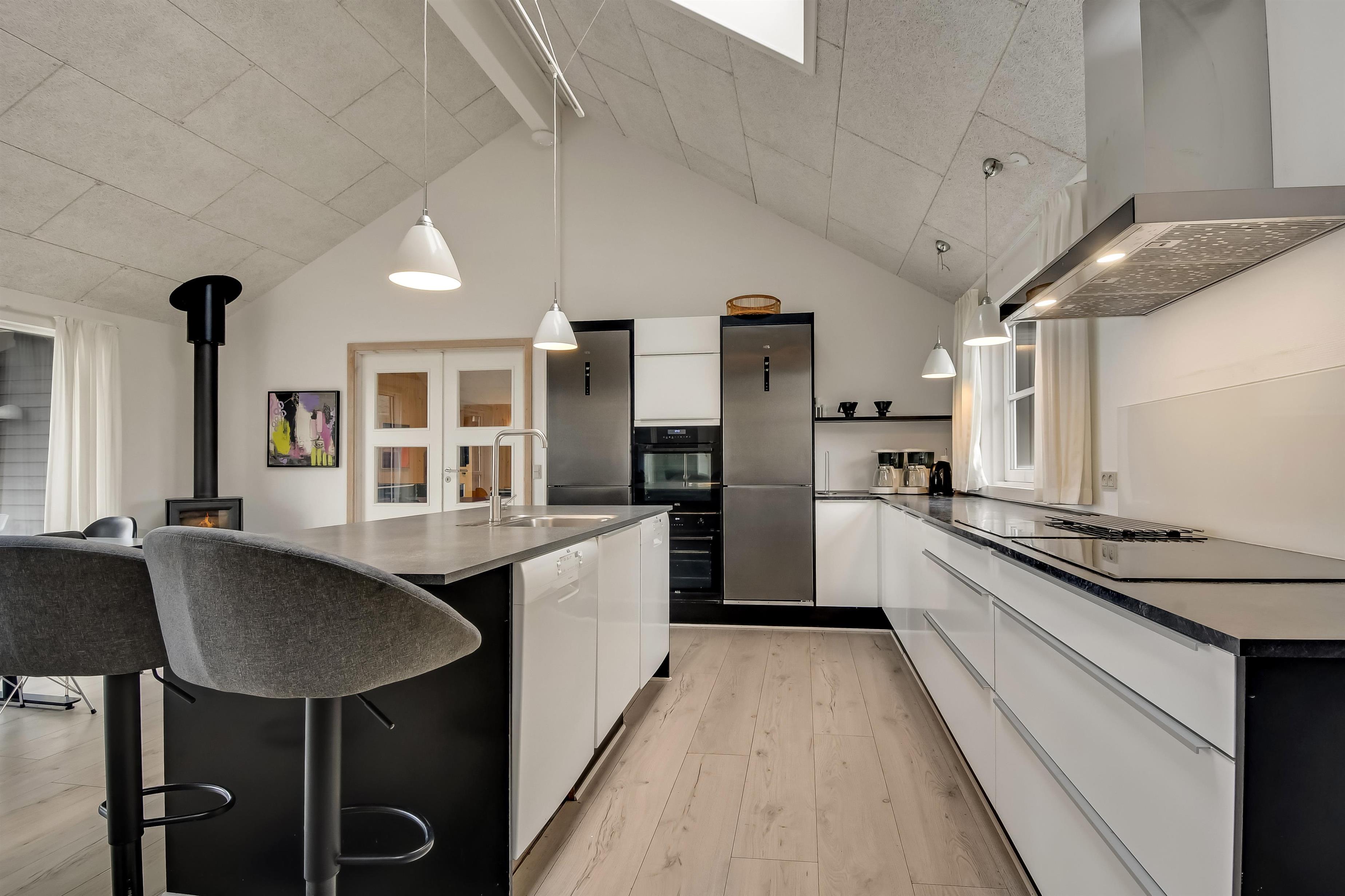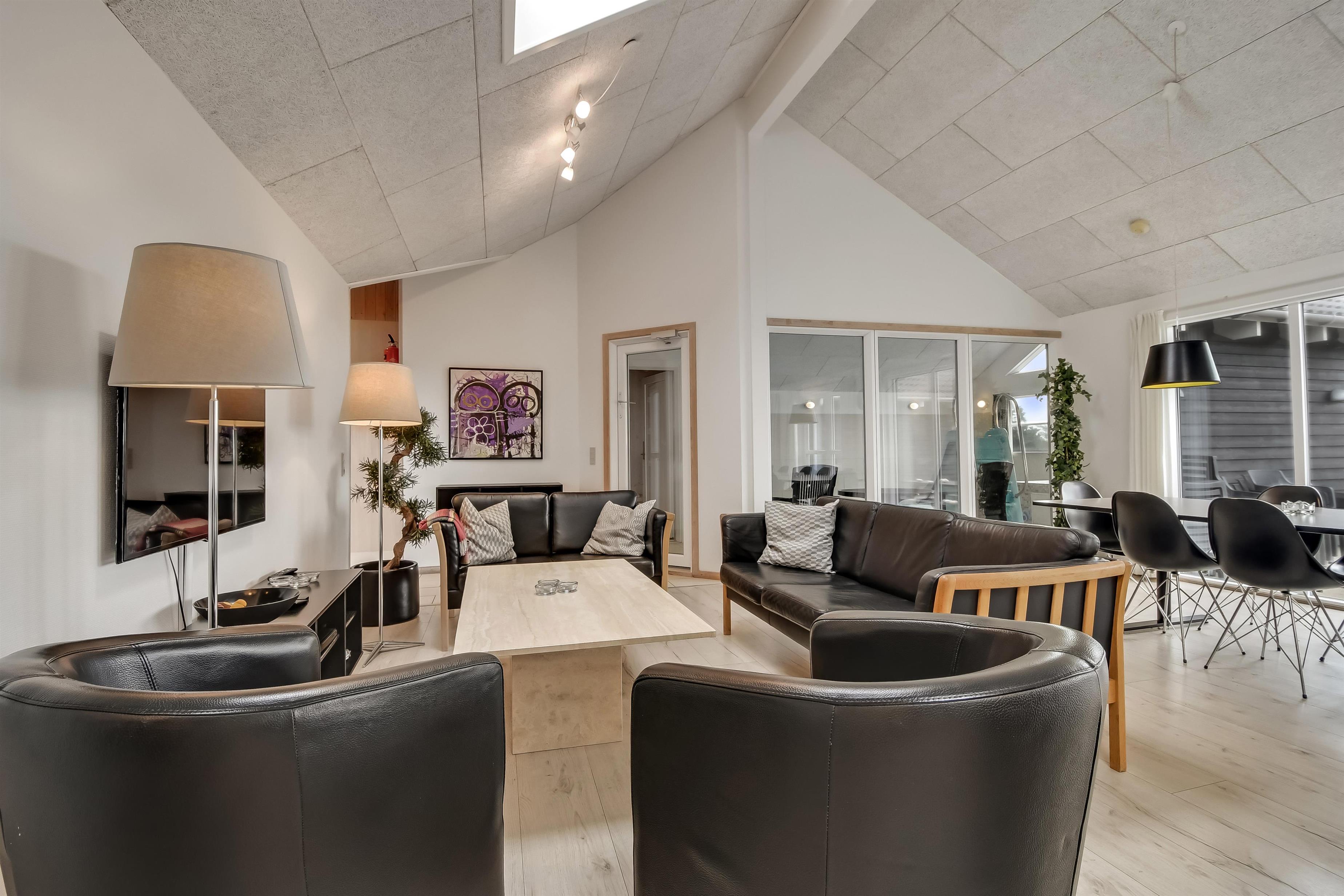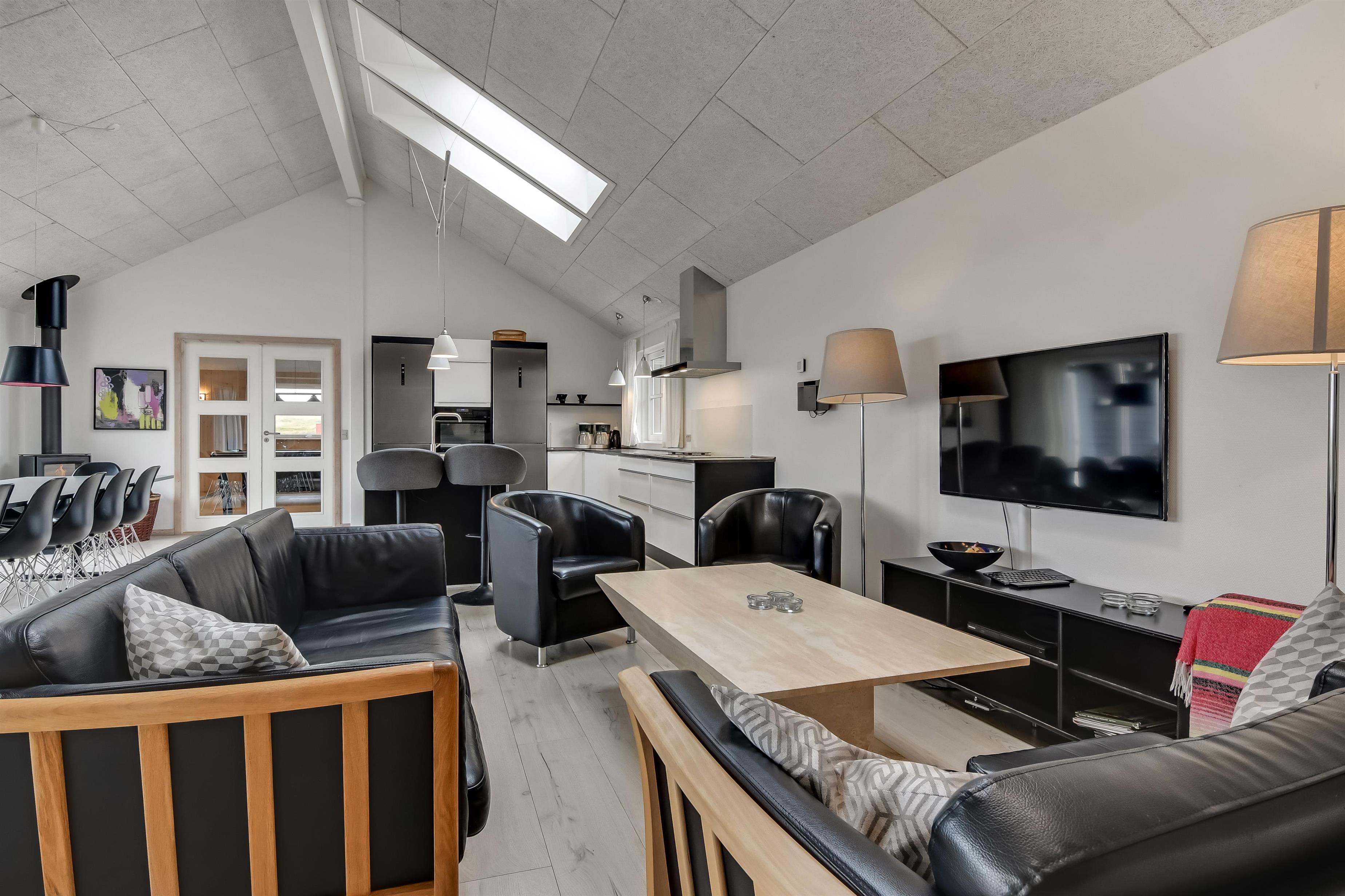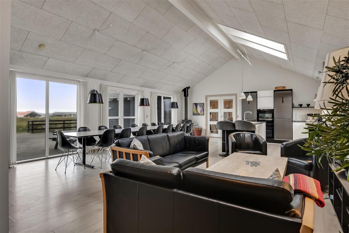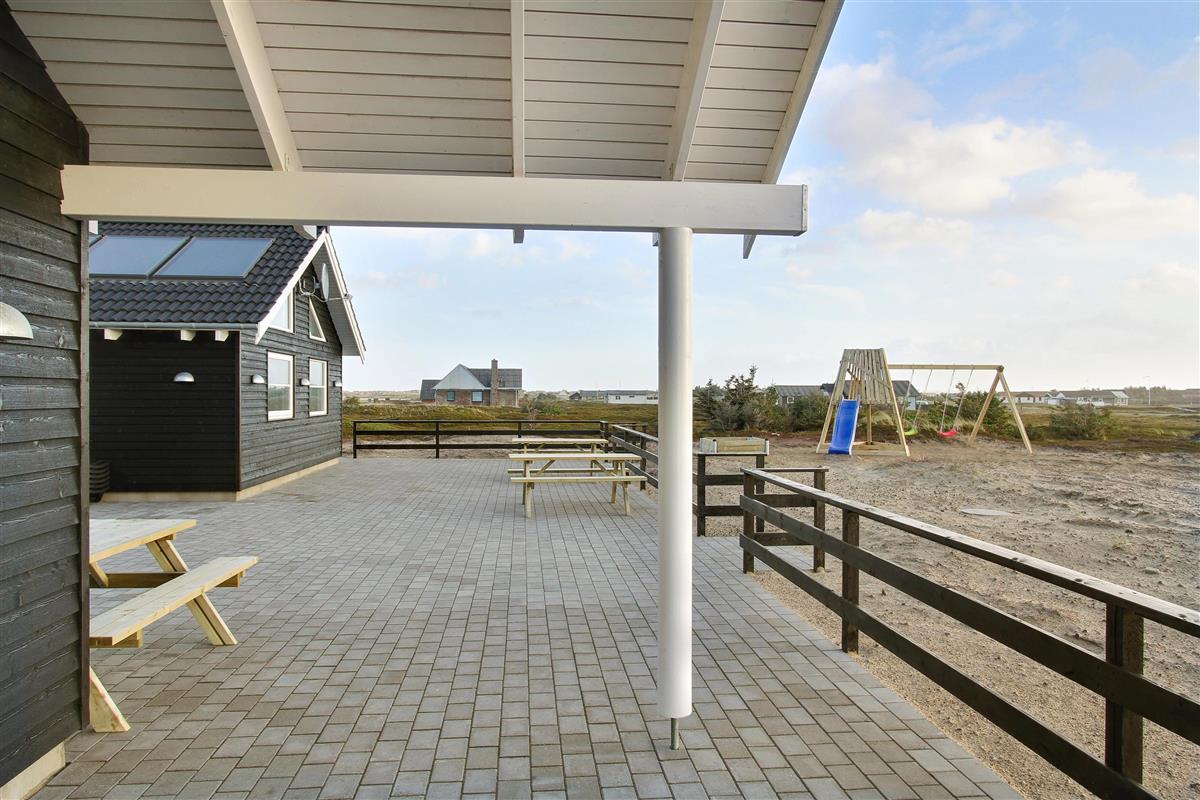Das Haus hat eine fantastische und teilweise überdachte Terrasse mit Tischbank-Set, Sonnenliegen, Fischreinigungsplatz und Grill. Hier finden Sie immer ein geschütztes Plätzchen an sonnigen Urlaubstagen. Auf dem Grundstück gibt es Schaukeln für die Kinder. Es wurde auch an die vierbeinigen Familienmitglieder gedacht, die ihren eigenen Hundehof haben. Dieses herrliche Ferienhaus liegt auf einem ca. 2.500 m² großen, schönen Dünengrundstück in Vrist, das zum Spielen und Ballspielen einlädt. Man wohnt nur 150 m vom Strand und 1.000 m von Lebensmittelgeschäften entfernt. In wenigen Autominuten erreichen Sie sowohl die aktive Handelsstadt Lemvig mit mehreren Fachgeschäften als auch die einzigartige Fischerstadt Thyborøn, die neben dem Fischereihafen auch einen Badestrand und viele Möglichkeiten für Aktivitäten bietet, die alle einen Besuch wert sind.