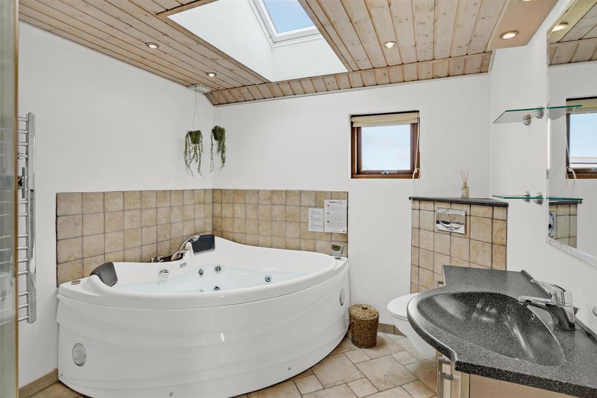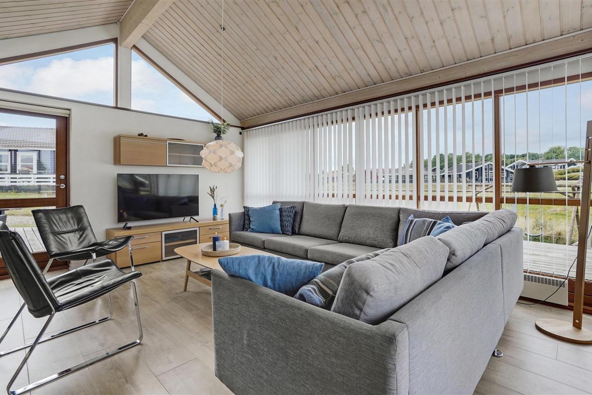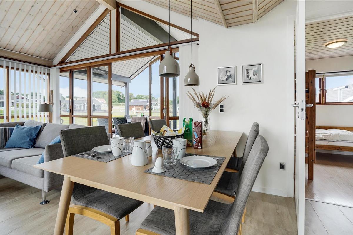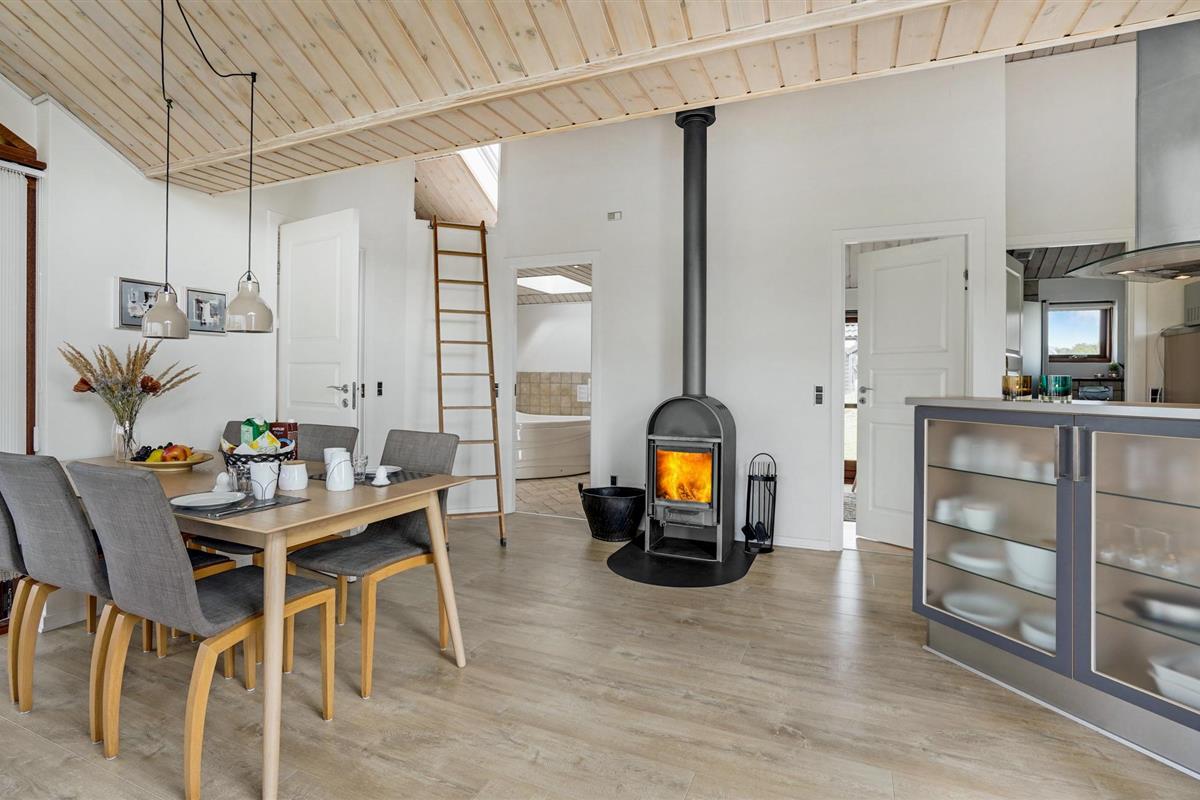 Eén wand van de woonkamer kan worden geopend naar het grote terras met een prachtig uitzicht op de Kleine Belt. Hierdoor voelt u zich heel dicht bij de natuur. De indeling van het huis is praktisch voor zowel volwassenen als kinderen, want er is een open slaapzolder. De grote badkamer is uitgerust met een whirlpool en een douchecabine. De keuken is modern uitgerust en heeft een woonkamer met goed meubilair.