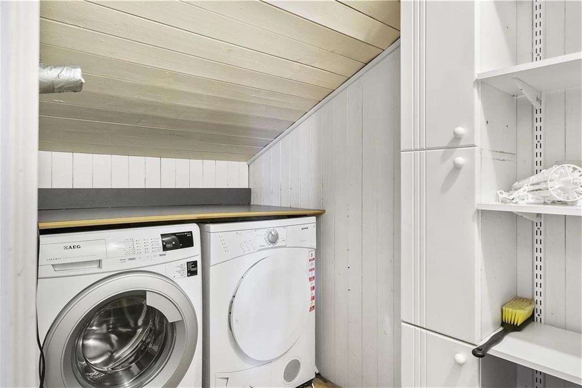 Bereits unmittelbar nach dem ersten Betreten wird Sie die Wohnatmosphäre dieses gemütlichen Ferienhauses in den Bann ziehen. Das Objekt wurde im Jahr 1988 erbaut und seither liebevoll umsorgt und renoviert. Die hellen Holzwände, die weißen Gardinen und die Sprossenfenster verleihen dem Urlaubsdomizil eine große Portion echten Ferienhauscharmes. Der im Wohnraum platzierte Kamin sorgt für behagliche Wärme und rundet das gemütliche Ambiente wunderbar ab. Der Wohnraum bildet eine harmonische und offene Einheit mit der Küche. Dieser schöne Bereich des Hauses wird schnell zum Sammelpunkt aller Mitreisenden avancieren. Machen Sie es sich gemütlich, bereiten Sie zusammen die Mahlzeiten zu, vertiefen Sie sich in ein gutes Buch oder gehen Sie allen anderen denkbaren Familienaktivitäten im Wohnbereich nach. An einem Ende des Raumes befindet sich eine ansprechende Schlafnische, die mit zuziehbaren Gardinen versehen ist und sich hervorragend für eine kleine Mittagspause oder auch als Übernachtungsmöglichkeit eignet. Zur Wohnfläche zählen darüber hinaus ein Badezimmer mit einer Dusche, ein Hauswirtschaftsbereich mit einer Waschmaschine und einem Wäschetrockner und zwei Schlafräume. Insgesamt beherbergt dieses reizende Urlaubsobjekt bis zu fünf übernachtende Gäste.