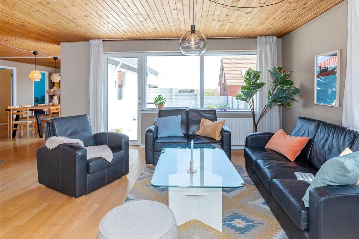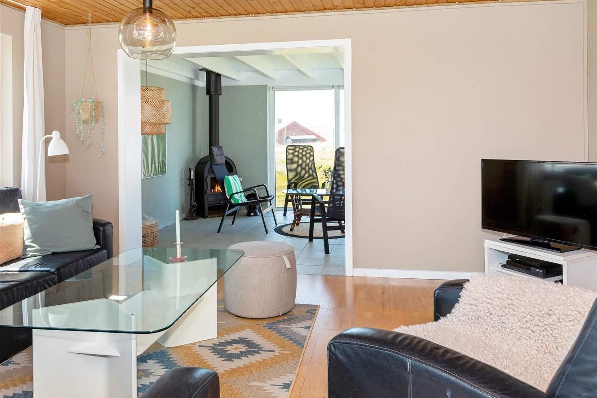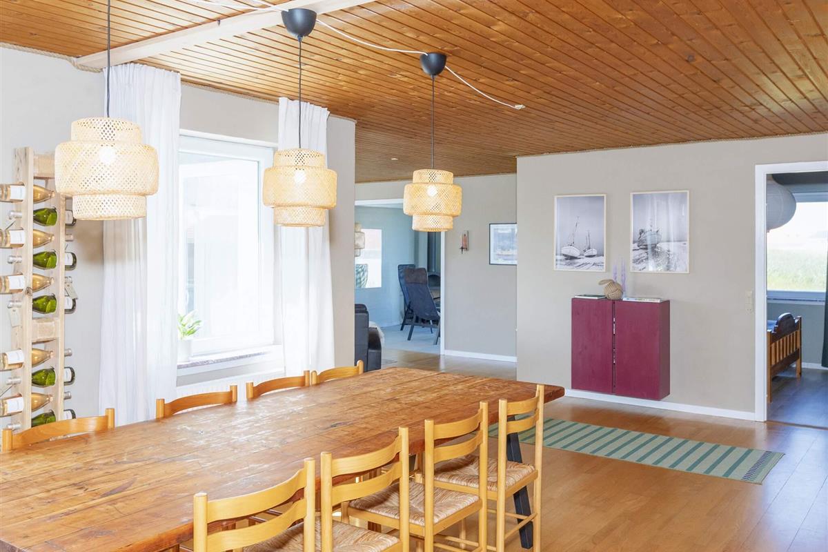 Dieses wunderschön renovierte Ferienhaus liegt auf einem Dünengrundstück mit teilweisem Blick auf die Nordsee und bietet eine ruhige und malerische Umgebung für einen erholsamen Urlaub. Von der verglasten Terrasse genießen Gäste einen atemberaubenden Blick auf das Meer und atemberaubende Sonnenuntergänge. An kühleren Abenden sorgt der gemütliche Holzofen im geräumigen Wohnbereich für eine warme und einladende Atmosphäre. Die offene Wohnküche mit Essbereich ist ideal für Familienessen und gesellige Runden.