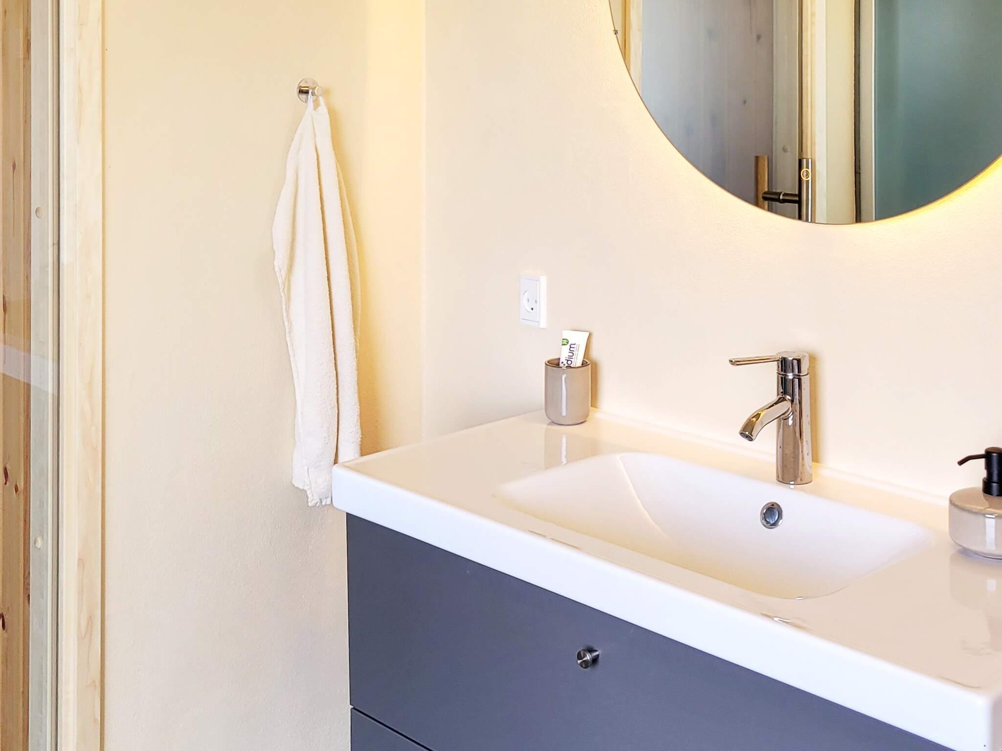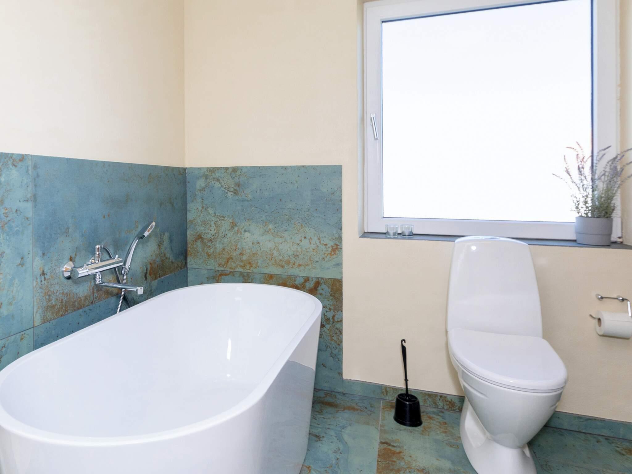 Das große Badezimmer des Hauses bietet ein Wellness-Erlebnis mit freistehender Badewanne und Sauna für ultimative Entspannung. Das Haus verfügt über vier komfortable Schlafzimmer und bietet somit Platz für Familien oder Gruppen. Der Internetzugang erfolgt über Highspeed-Glasfaser. Waschmaschine und Trockner befinden sich im Hauswirtschaftsraum, getrennt von der Küche. Gäste können mit dem mitgelieferten Chromecast auch Inhalte von ihren eigenen TV-Anbietern streamen und so für Unterhaltung für alle sorgen.