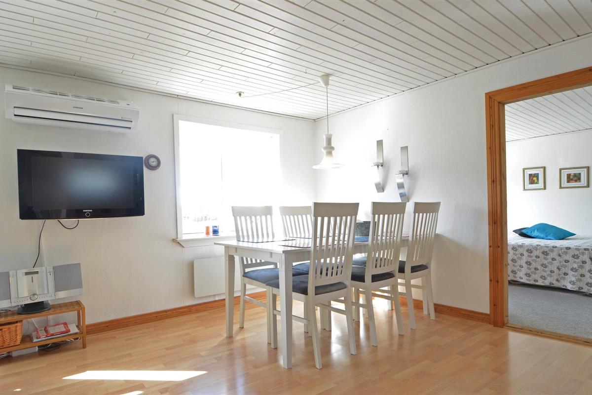 Het huis bestaat uit 4 slaapkamers, 1 badkamer met vloerverwarming, een ruime woonkamer met houtkachel en een grote eethoek aan de open keuken. De keuken is goed uitgerust met onder andere een koffiezetapparaat, vaatwasser en magnetron. Het huis is ook uitgerust met tv, Playstation 2, dvd-speler en wifi, dus vermaak is gegarandeerd als het weer uitnodigt tot gezelligheid. Buiten is er een terras met tuinmeubelen, ligstoelen en een barbecue.