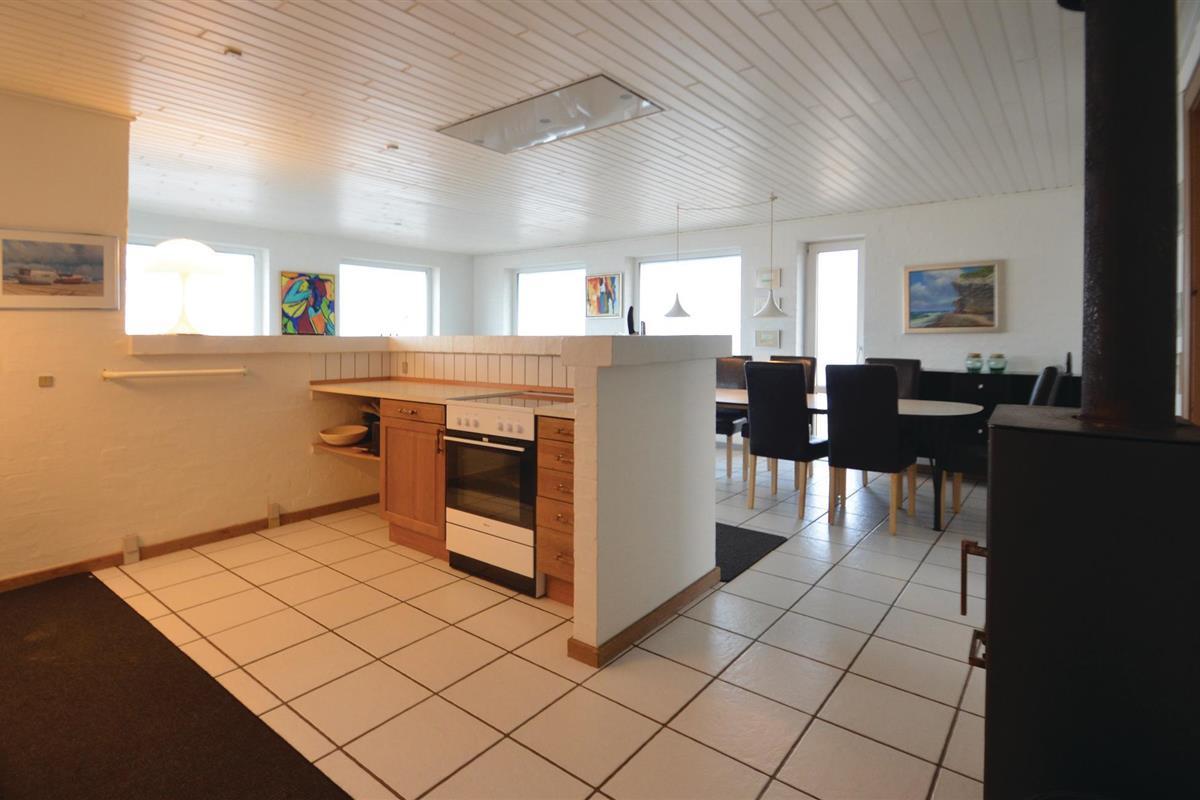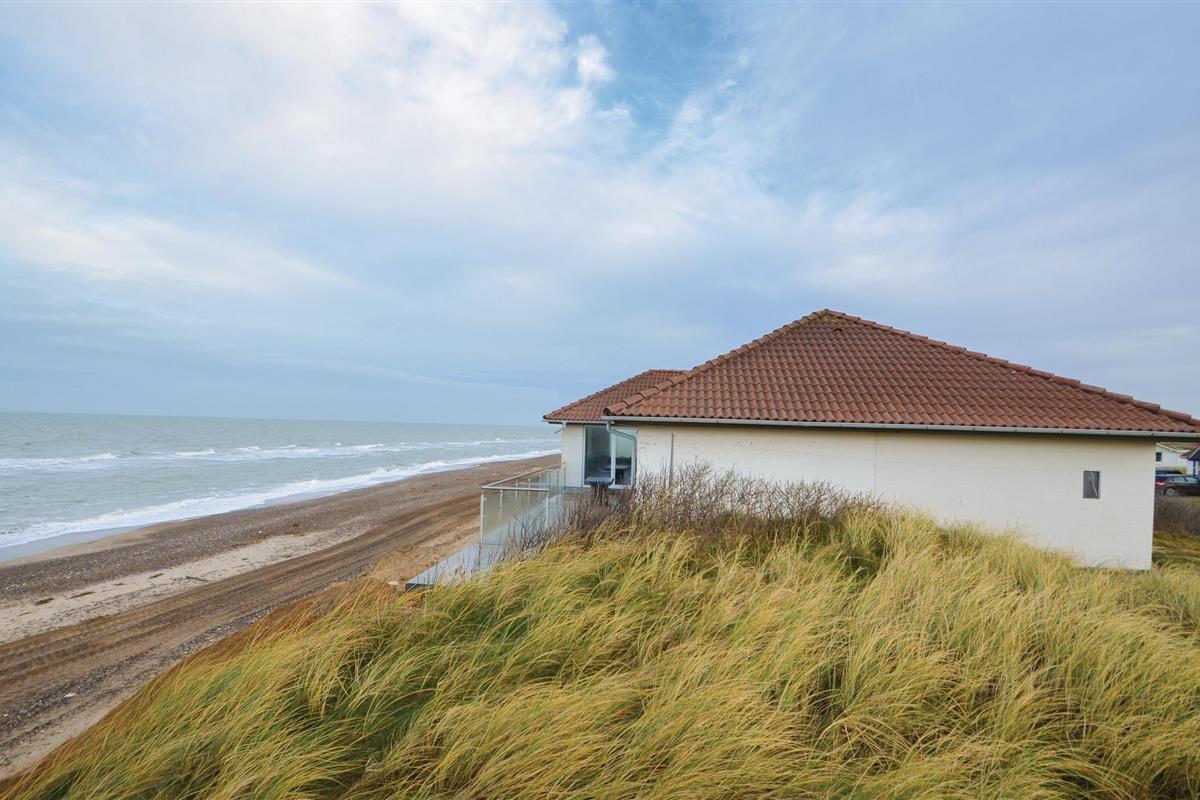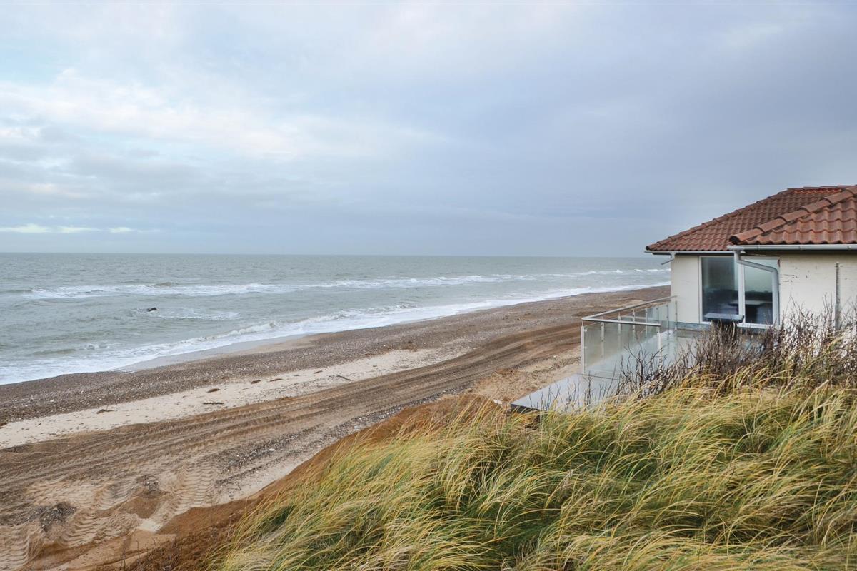 Dit prachtige vakantiehuis ligt in de buurt van Lild, direct aan het mooie strand. Vanuit het huis heb je een ontroerend uitzicht op de ruisende Noordzee, die je kunt zien vanuit de grote panoramische ramen en vanaf een van de drie terrassen. Het vakantiehuis staat zelfs zo dicht bij de zee dat de branding tijdens storm tegen de ramen slaat en anders is het rustgevende geluid van de beukende golven heel ontspannend. Vlakbij het vakantiehuis ligt de 47 meter hoge kalksteenklif Bulbjerg, de enige vogelklif van Denemarken en de meest zuidelijke broedplaats van de drieteenmeeuw. Vanaf het hoogste punt van de klif heb je een uniek uitzicht over de Noordzee, duinen, kustbossen en heidevelden, en aan de voet van de klif kun je soms fossiele zee-egels en andere fossielen vinden. Het is ook niet ver naar het vogelreservaat Vejlerne, waar je vanuit uitkijktorens zeldzame vogelsoorten kunt observeren. Vergeet je verrekijker niet! Tal van gemarkeerde wandel- en fietspaden, waaronder de Noordzeeroute, leiden door het prachtige landschap. Naast het strand zijn het fjord en de meren ook geschikt om te vissen. Je kunt je hengel direct voor het huis uitwerpen en je klaarmaken voor een platvis of kabeljauw. De zachte Limfjord, op slechts een paar kilometer afstand, biedt een afwisseling van de mooie maar soms ruige Noordzee en wordt gekenmerkt door pittoreske dorpjes, kleine veerboothavens en rustiger water. Cultuurliefhebbers kunnen verschillende kunstenaars aan het werk zien in het museum van de schilder Kirsten Kjær, een indruk krijgen van de enorme vestingwerken, de Atlantikwall in opdracht van Hitler, in het interessante bunkermuseum in Hanstholm of op de schouders van de Vikingen lopen op hun begraafplaatsen bij Frøstrup. In de nabijgelegen plaatsen Thisted en Fjerritslev zijn goede winkels en een breed scala aan sportieve activiteiten: golfbaan, manege, overdekt zwembad, bowling, musea, galerieën en tentoonstellingen.