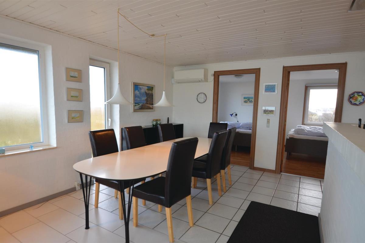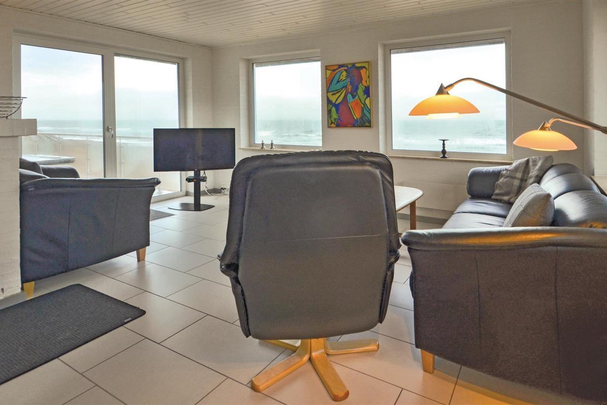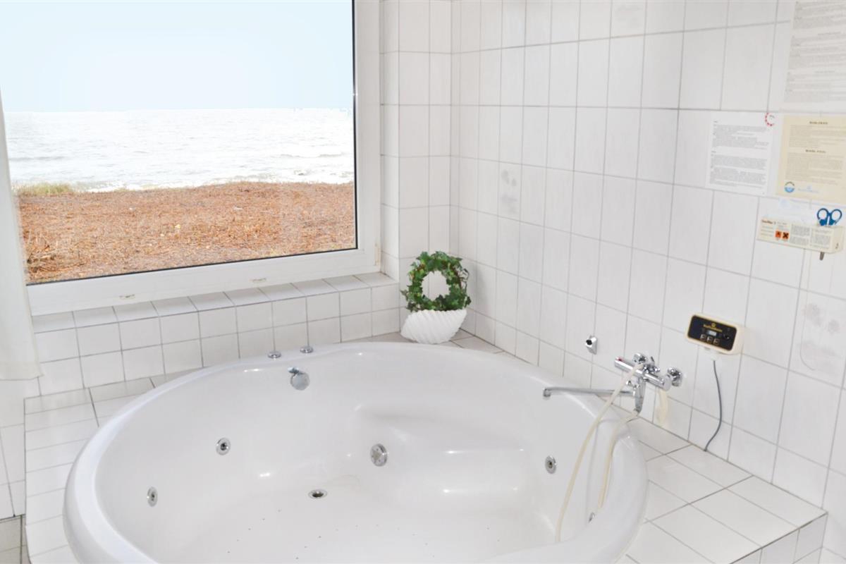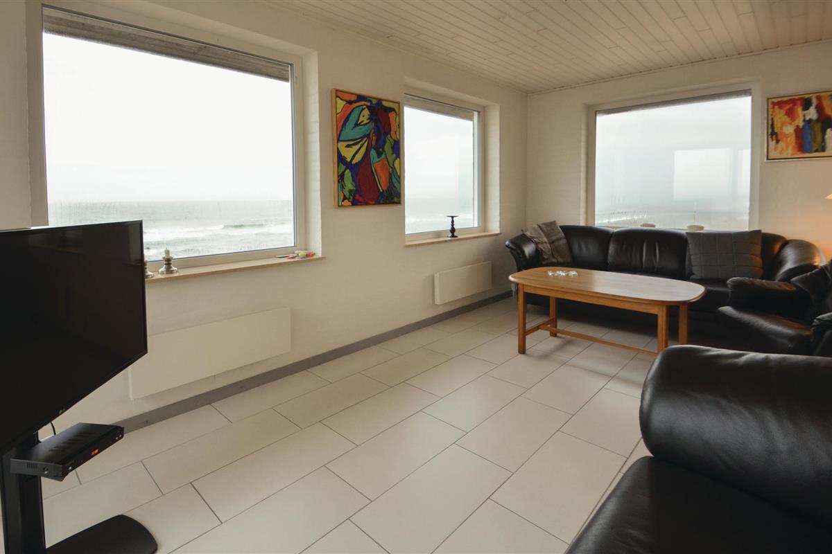 Dit prachtige vakantiehuis ligt in de buurt van Lild, direct aan het mooie strand. Vanuit het huis heb je een ontroerend uitzicht op de ruisende Noordzee, die je kunt zien vanuit de grote panoramische ramen en vanaf een van de drie terrassen. Het vakantiehuis staat zelfs zo dicht bij de zee dat de branding tijdens storm tegen de ramen slaat en anders is het rustgevende geluid van de beukende golven heel ontspannend. Vlakbij het vakantiehuis ligt de 47 meter hoge kalksteenklif Bulbjerg, de enige vogelklif van Denemarken en de meest zuidelijke broedplaats van de drieteenmeeuw. Vanaf het hoogste punt van de klif heb je een uniek uitzicht over de Noordzee, duinen, kustbossen en heidevelden, en aan de voet van de klif kun je soms fossiele zee-egels en andere fossielen vinden. Het is ook niet ver naar het vogelreservaat Vejlerne, waar je vanuit uitkijktorens zeldzame vogelsoorten kunt observeren. Vergeet je verrekijker niet! Tal van gemarkeerde wandel- en fietspaden, waaronder de Noordzeeroute, leiden door het prachtige landschap. Naast het strand zijn het fjord en de meren ook geschikt om te vissen. Je kunt je hengel direct voor het huis uitwerpen en je klaarmaken voor een platvis of kabeljauw. De zachte Limfjord, op slechts een paar kilometer afstand, biedt een afwisseling van de mooie maar soms ruige Noordzee en wordt gekenmerkt door pittoreske dorpjes, kleine veerboothavens en rustiger water. Cultuurliefhebbers kunnen verschillende kunstenaars aan het werk zien in het museum van de schilder Kirsten Kjær, een indruk krijgen van de enorme vestingwerken, de Atlantikwall in opdracht van Hitler, in het interessante bunkermuseum in Hanstholm of op de schouders van de Vikingen lopen op hun begraafplaatsen bij Frøstrup. In de nabijgelegen plaatsen Thisted en Fjerritslev zijn goede winkels en een breed scala aan sportieve activiteiten: golfbaan, manege, overdekt zwembad, bowling, musea, galerieën en tentoonstellingen.
