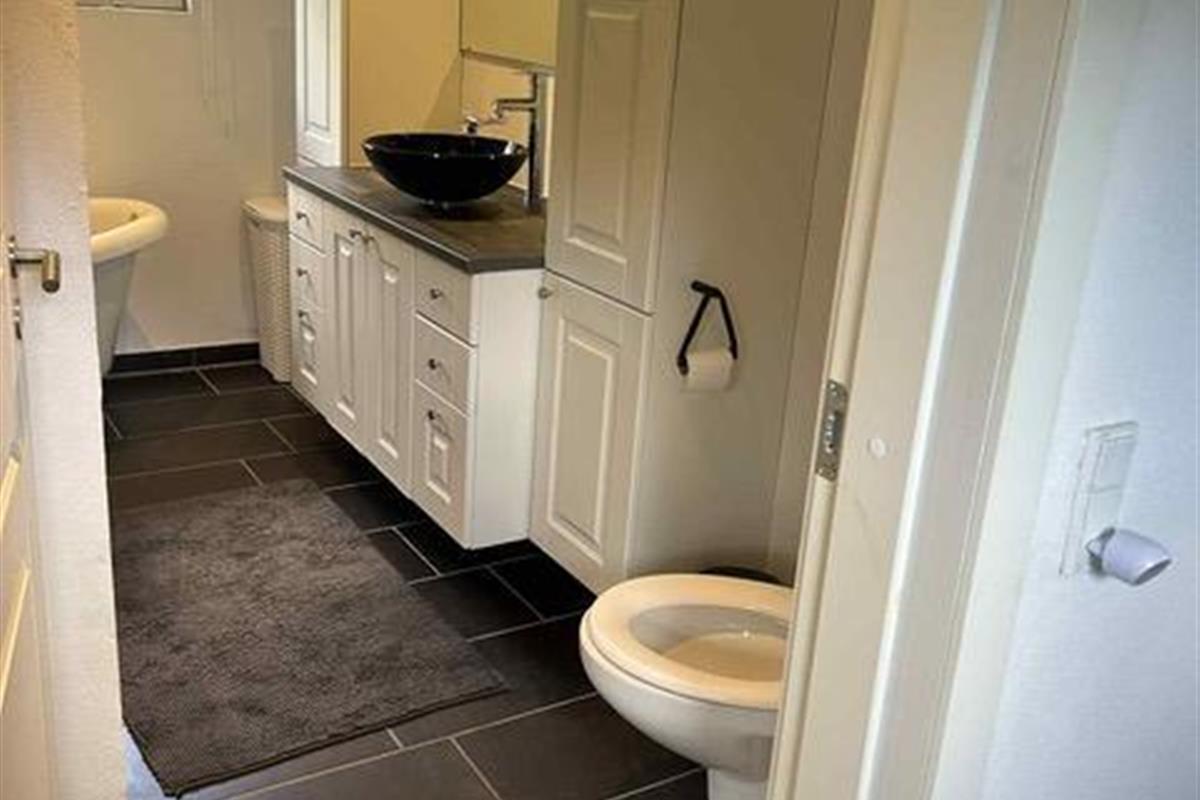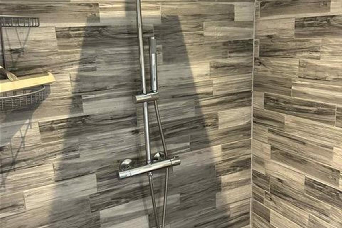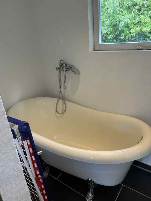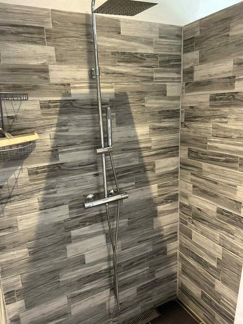 Bathroom with both a shower and a bathtub plus underfloor heating. A washing machine is available.