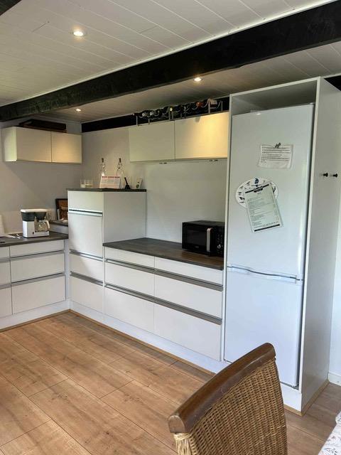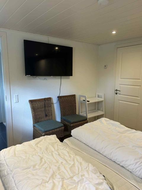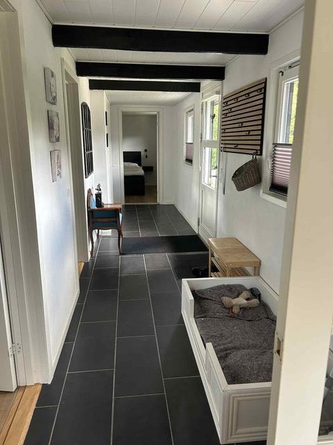 Spacious living room with a wood-burning stove and underfloor heating. You’ll find Danish, German, and Swedish TV channels, as well as Chromecast TV and free internet. For children and the young at heart, there is a PC gaming console.