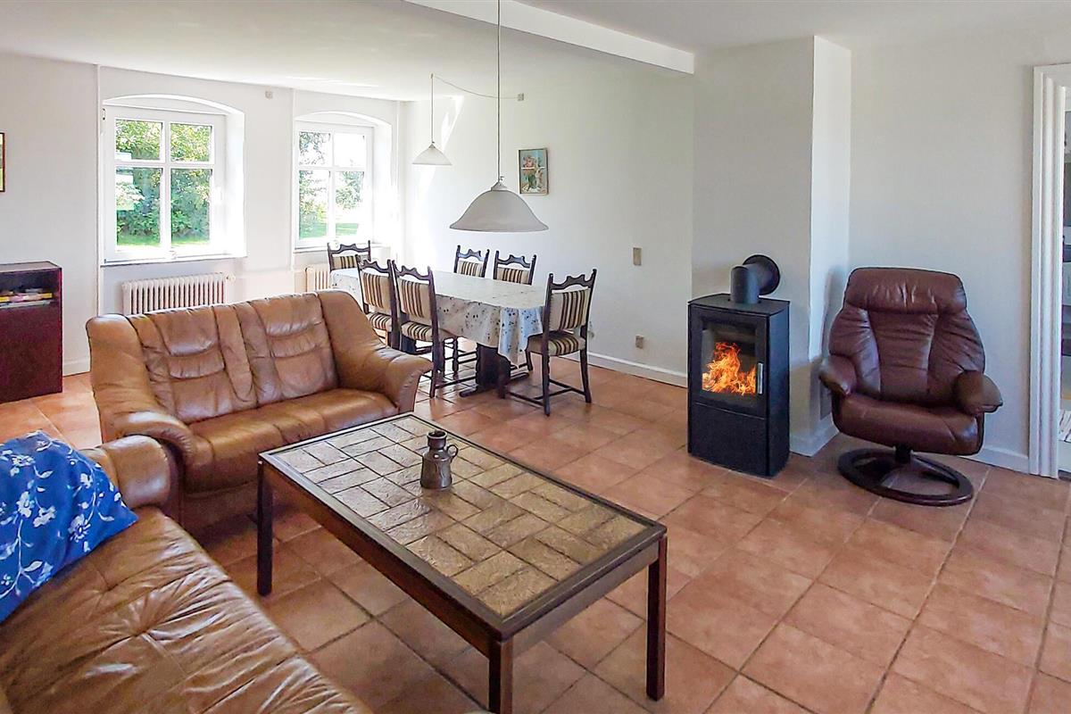 Ervaar rust, ruimte en frisse zeelucht in je ruime vakantiehuis op West-Lolland. Het historische pand ligt verscholen in de natuur en biedt volop ruimte voor ontspanning, beweging en gezamenlijke ervaringen. Op de begane grond vind je een gezellige woonkamer met houtkachel en comfortabele zithoek, een uitnodigende eethoek en een moderne keuken met veel ruimte om te koken. Boven nodigt een andere woonkamer met tv en schuine plafonds je uit om je terug te trekken of samen te spelen.