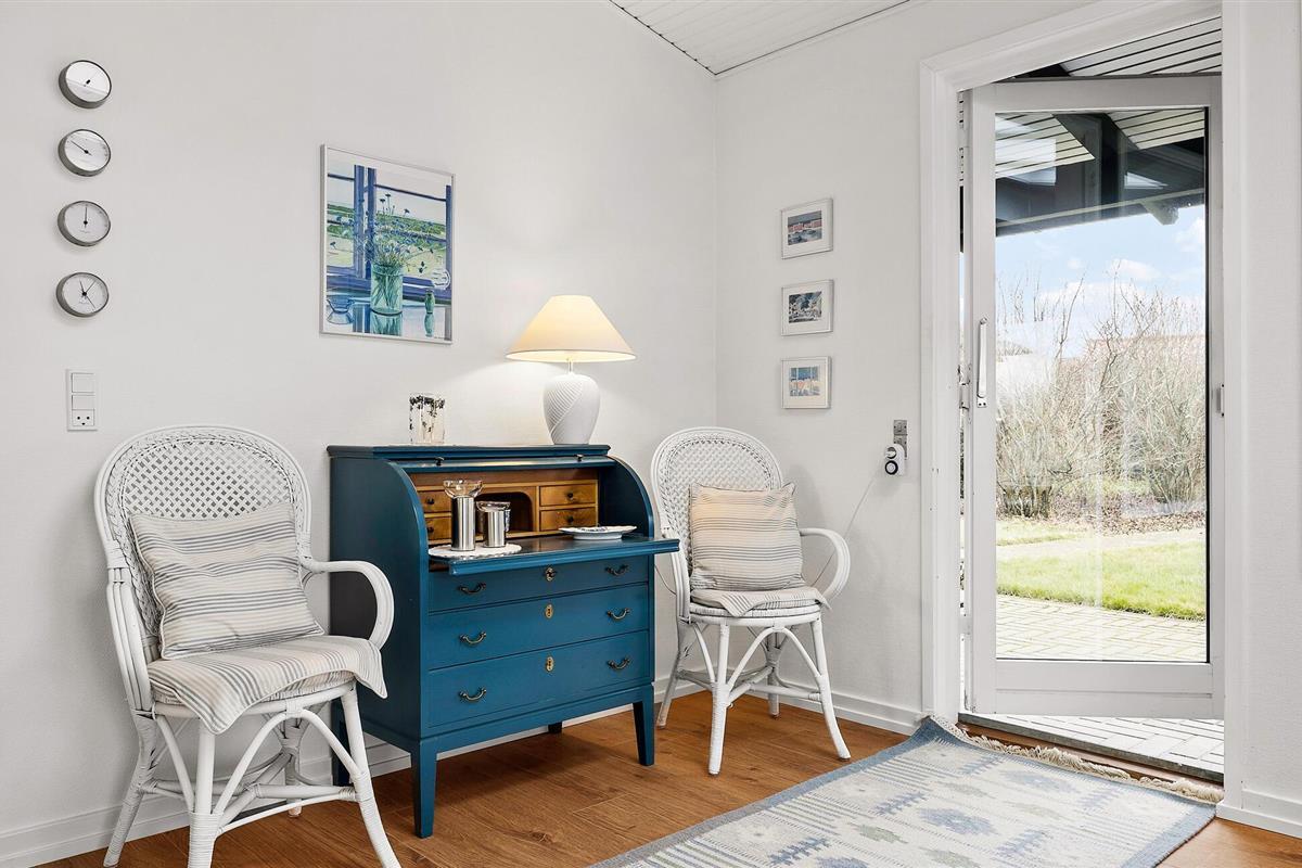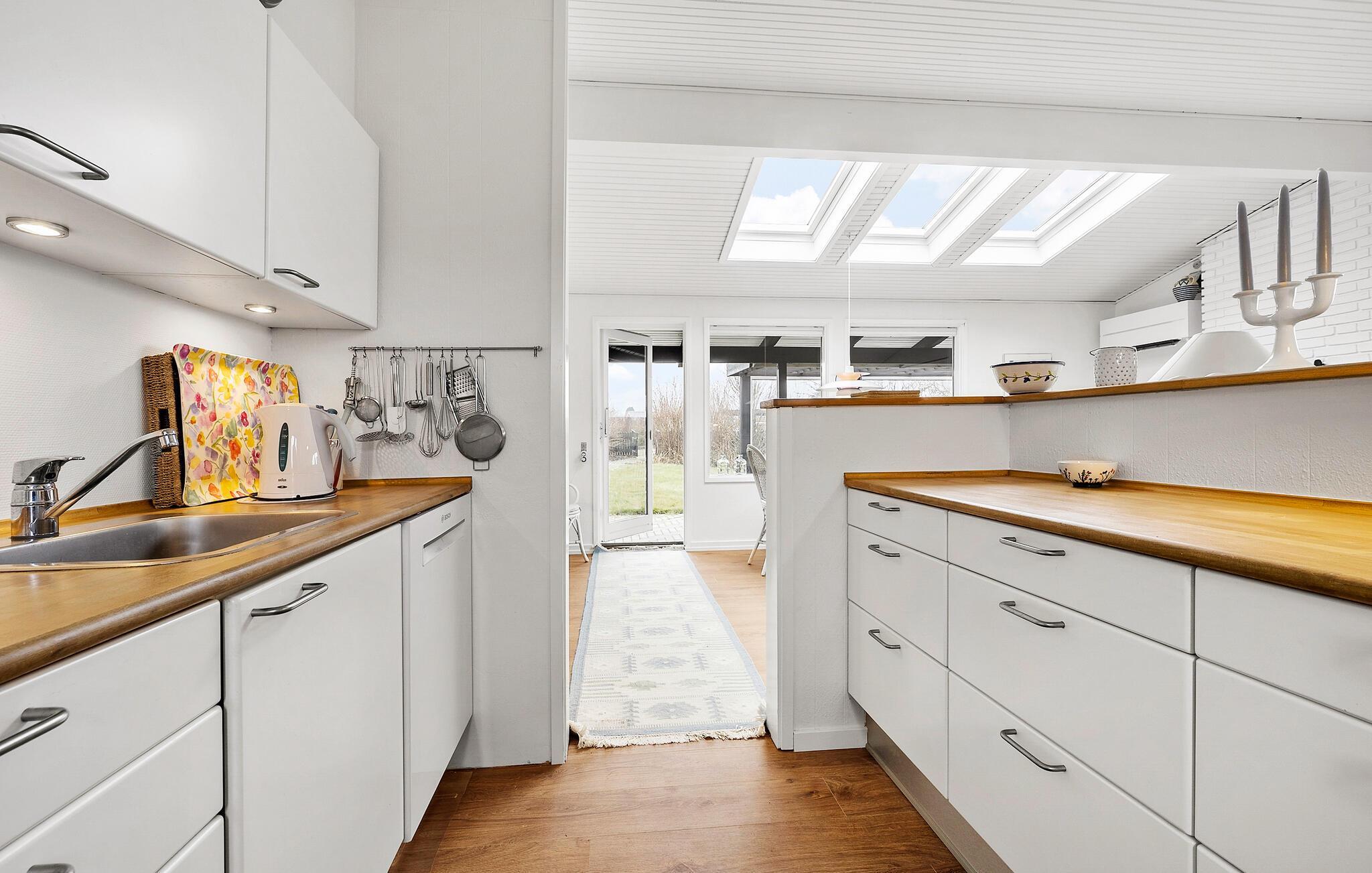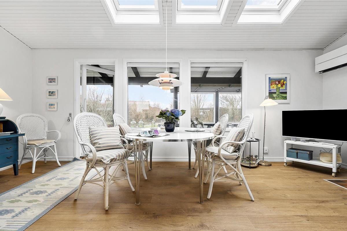 De rustige locatie in de buurt van Roskilde Fjord, het stijlvolle interieur en de nabijheid van de natuur maken deze plek ideaal voor een ontspannen vakantie. Geniet van de lichte, vriendelijke sfeer van het huis. De ruime woonkamer met grote ramen biedt een prachtig uitzicht op het groen en nodigt uit om te ontspannen. Strijk neer op de gezellige bank en lees een goed boek. De open eethoek met directe toegang tot het overdekte terras creëert een gezellige omgeving voor gezamenlijke maaltijden.