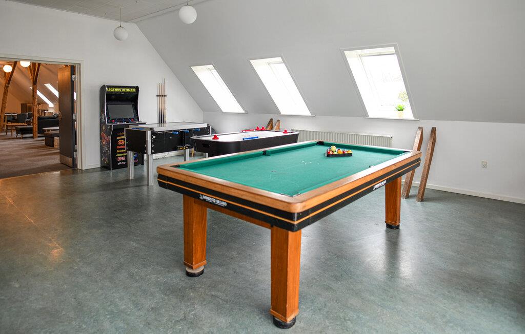Plan je een grote familiereünie, een jubileum of een andere feestelijke gelegenheid? Dan is deze ruime woning in Lindknud misschien precies wat je zoekt. Er is ruimte voor maximaal veertig personen om samen onvergetelijke dagen door te brengen. Begin de dag samen met een ontbijt aan de lange eettafel en geniet van het gezelschap van je geliefden. De stijlvol ingerichte lounges bieden talloze gezellige zitmogelijkheden voor ontspannen gesprekken en sociale bijeenkomsten. Je kunt ook genieten van een spelletje tafelvoetbal of airhockey.
