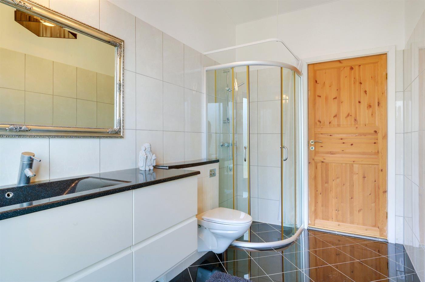 Er is 1 badkamer met douchehok en 1 toilet.