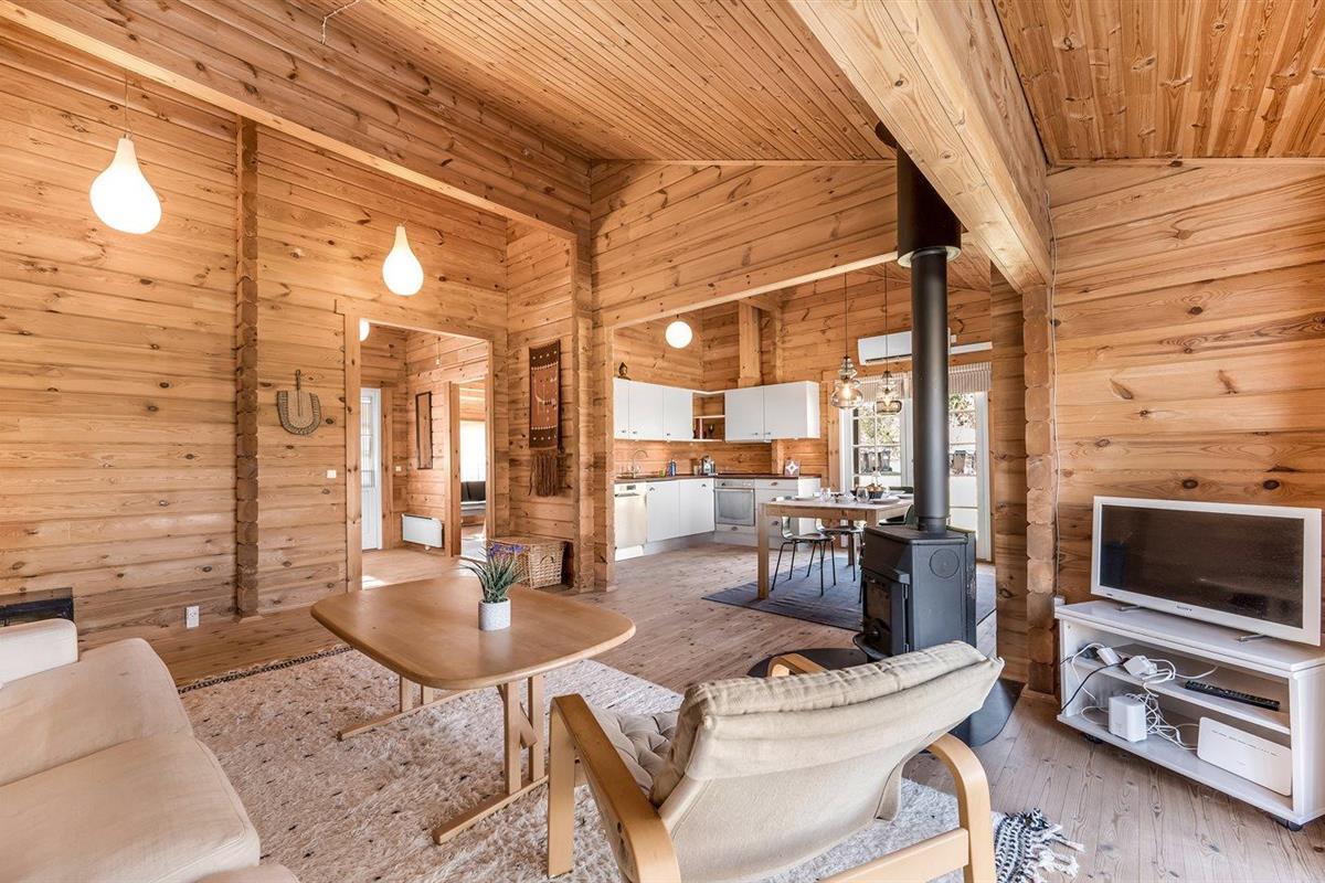 Modern vakantiehuis in Melby met 3 slaapkamers, houtkachel, overdekt terras en duurzame warmtepomp.