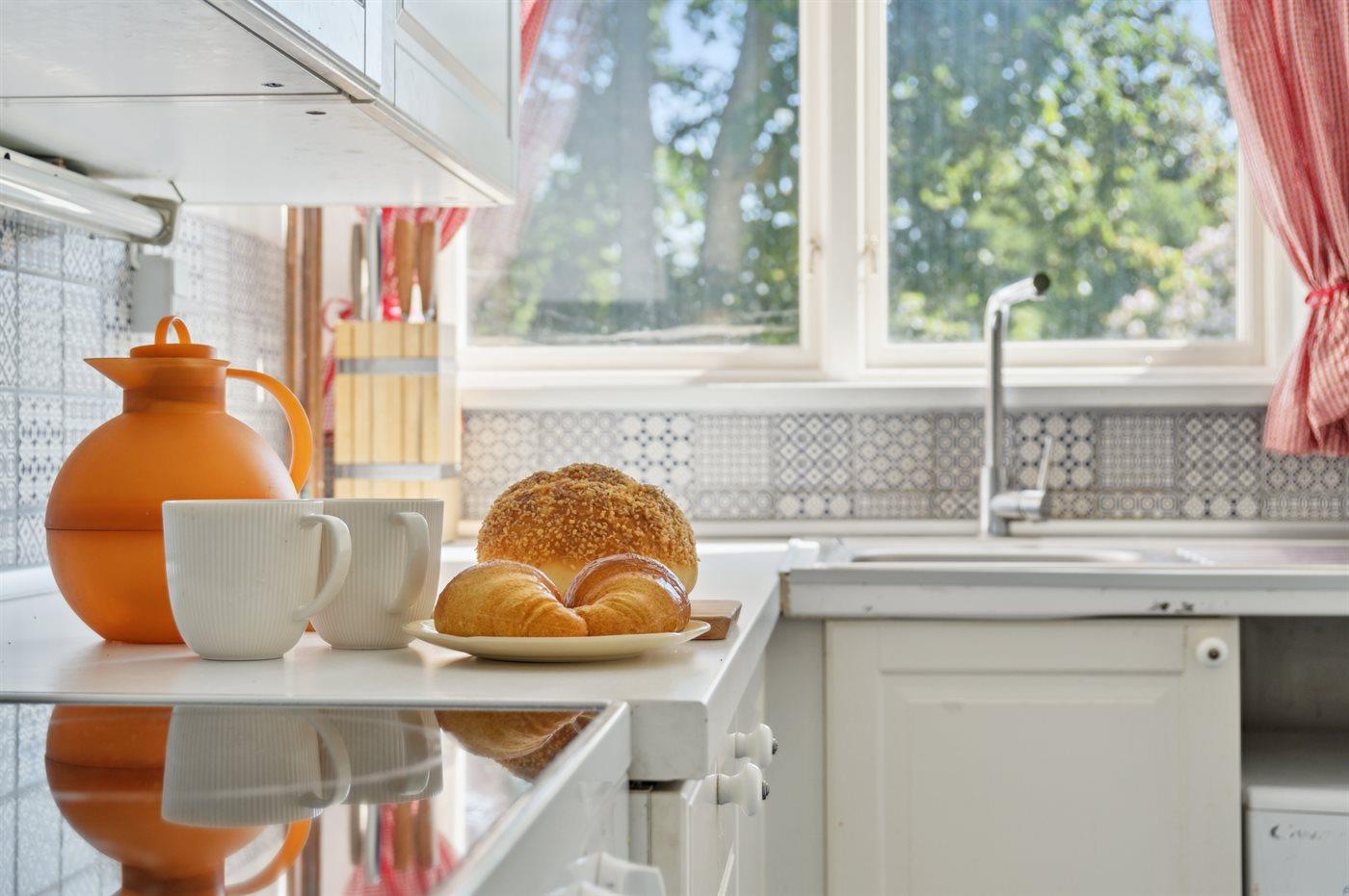 De keuken is uitgerust met koelkast Er zijn 4 keramische kookplaten, heteluchtoven, magnetron.