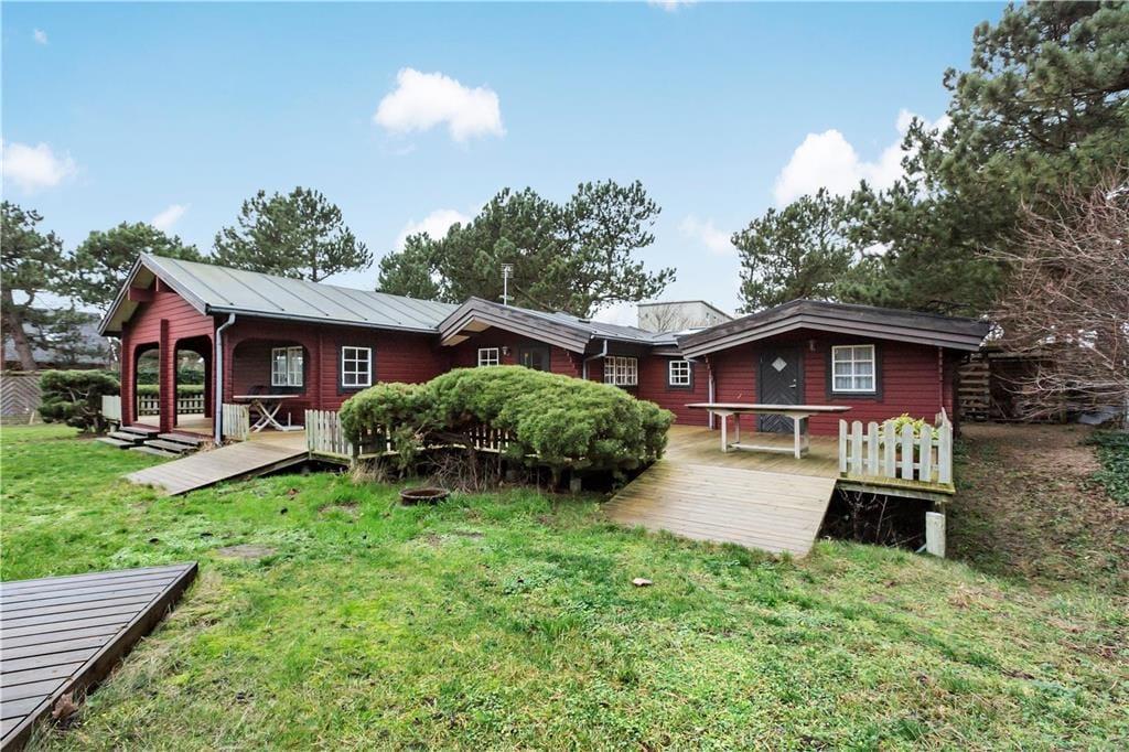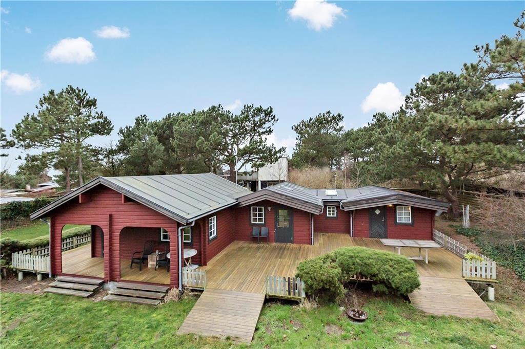 Das Ferienhaus liegt auf einem 1.200 m² großen, umzäunten Grundstück. Vom Wohnraum aus genießen Sie direkten Zugang zur überdachten Terrasse. Die überdachte Terrasse verlängert die Sommersaison und stellt zudem sicher, dass Sie sich im Bedarfsfalle gut geschützt im Freien aufhalten können. Gartenmöbel und ein Grill stehen selbstverständlich für Sie bereit.