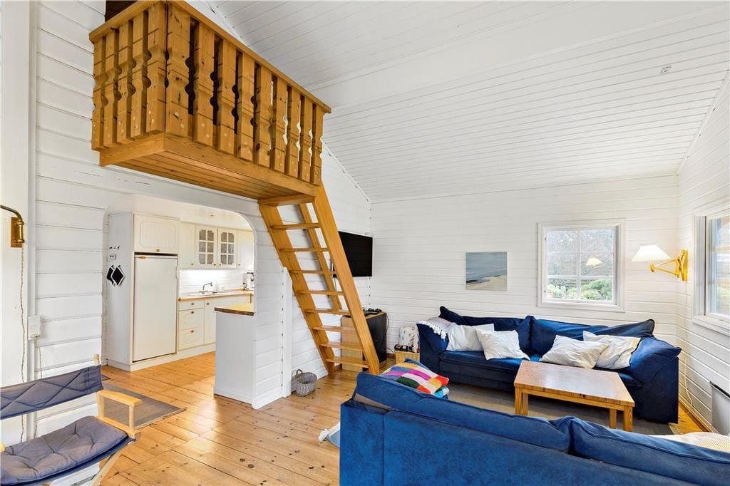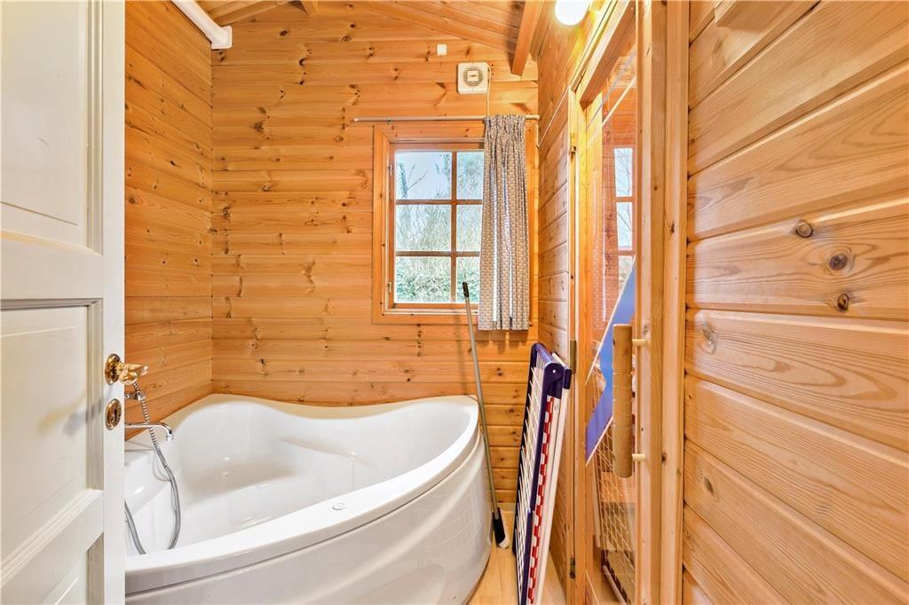 Das Haus empfängt Sie mit einem Wohnraum, der Sitzplätze und einen Kaminofen umfasst. Hinzu gesellen sich ein Esszimmer und eine offene Küche. Die Schlafplätze verteilen sich auf 2 Schlafräume mit jeweils einem Doppelbett und auf einen offenen Schlafboden, auf dem 2 Einzelbetten platziert sind. Im Badezimmer gibt es ein WC und eine Duschnische. Der separate Whirlpoolraum beinhaltet den Whirlpool, eine Sauna und eine Waschmaschine. Zum Urlaubsdomizil gehört außerdem ein Nebengebäude, in dem ein Doppelbett und ein Schlafsofa für Sie zur Verfügung stehen. Im Nebengebäude sind zusätzlich ein Badezimmer mit einem WC und einer Duschnische eingerichtet.