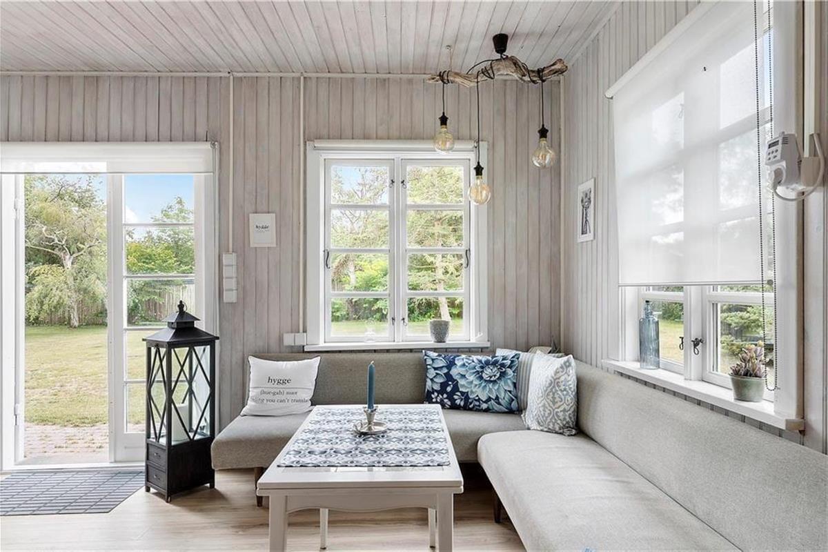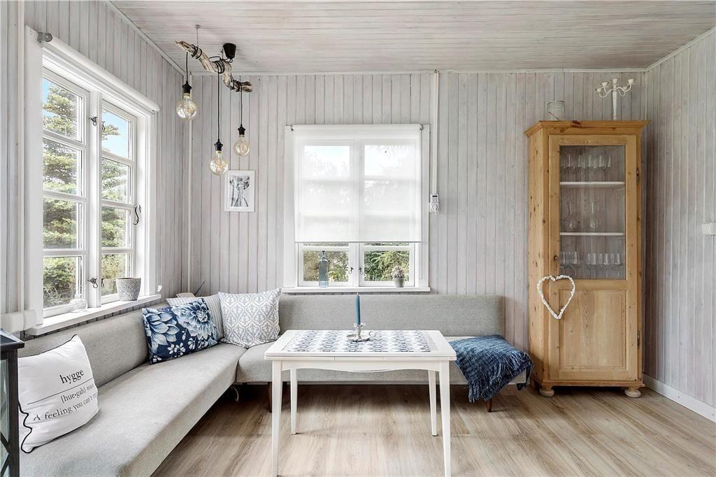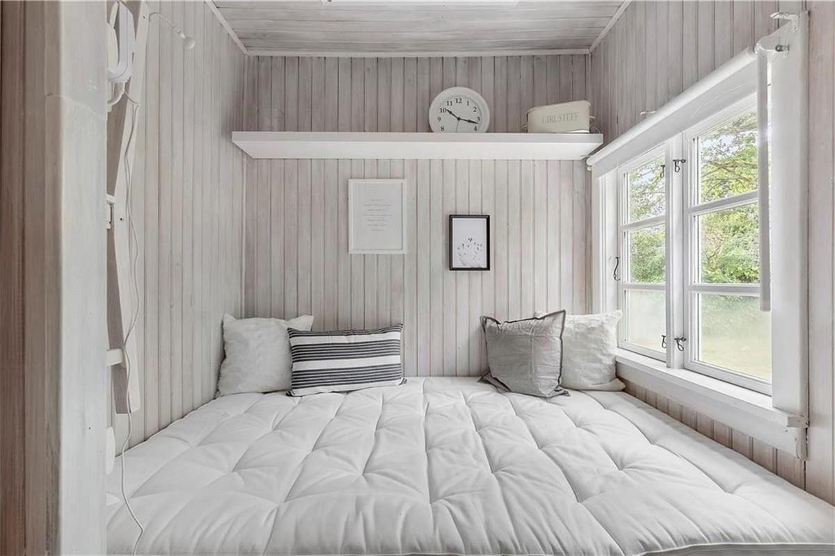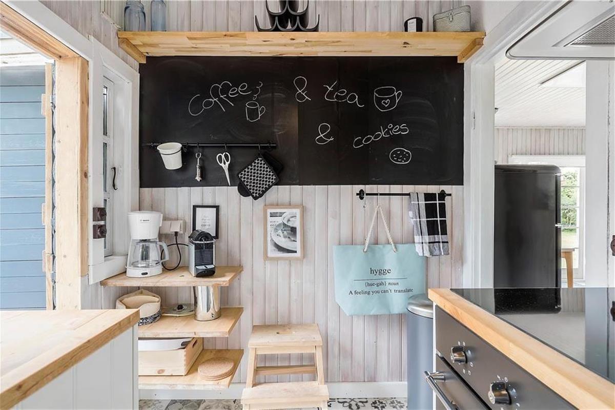 Dieses Ferienhaus empfängt dich mit einer warmen und einladenden Atmosphäre. Das Wohnzimmer ist gemütlich eingerichtet und bietet direkten Zugang zu einer schönen Holzterrasse, die von Sonnenlicht durchflutet wird und einen hellen, luftigen Raum schafft. Die separate Küche, die ebenfalls Zugang zu einer Morgenterrasse bietet, ist ideal, um den Tag mit einer Tasse Kaffee zu beginnen. Obwohl das Ferienhaus klein ist, sorgen clevere Lösungen für eine optimale Platzausnutzung. Die schmalen Betten verleihen ein authentisches Sommerhausgefühl, während das Gästehaus an der Morgenterrasse zusätzliche Schlafplätze und Privatsphäre für Familienmitglieder oder Gäste bietet.