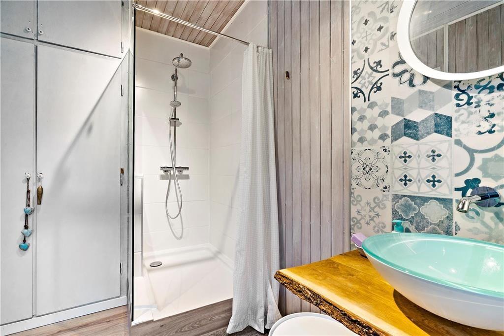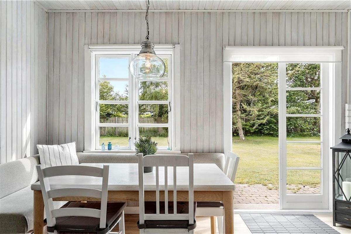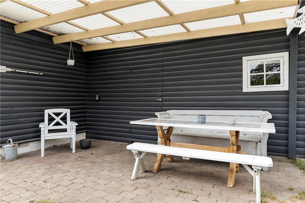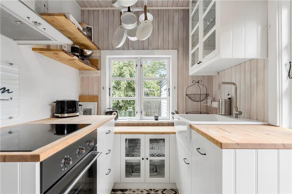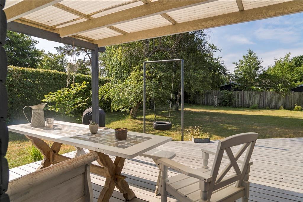 Dieses Ferienhaus empfängt dich mit einer warmen und einladenden Atmosphäre. Das Wohnzimmer ist gemütlich eingerichtet und bietet direkten Zugang zu einer schönen Holzterrasse, die von Sonnenlicht durchflutet wird und einen hellen, luftigen Raum schafft. Die separate Küche, die ebenfalls Zugang zu einer Morgenterrasse bietet, ist ideal, um den Tag mit einer Tasse Kaffee zu beginnen. Obwohl das Ferienhaus klein ist, sorgen clevere Lösungen für eine optimale Platzausnutzung. Die schmalen Betten verleihen ein authentisches Sommerhausgefühl, während das Gästehaus an der Morgenterrasse zusätzliche Schlafplätze und Privatsphäre für Familienmitglieder oder Gäste bietet.