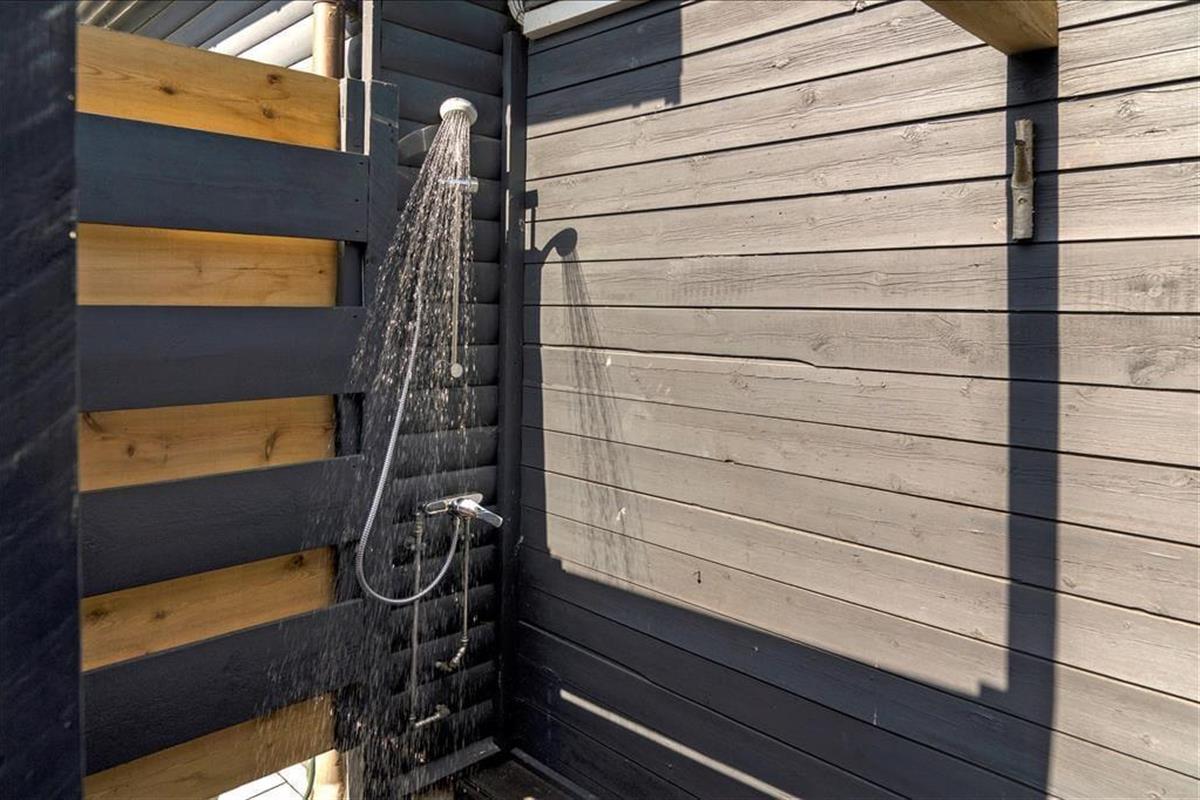 Draußen erwartet dich eine großzügige, grüne Rasenfläche, die zu Ballspielen, Entspannung und fröhlichen Stunden einlädt. Die Terrasse rund um das Haus ermöglicht es dir, die Sonne den ganzen Tag über zu genießen – vom frühen Morgen bis in die späten Abendstunden. Hier kannst du leckere Mahlzeiten grillen und sie in geselliger Runde mit Familie und Freunden genießen. Die Außendusche ist perfekt, um nach einem Tag am Strand den Sand abzuspülen oder frisch in den Tag zu starten. Die lange Einfahrt bietet ausreichend Platz zum Parken und macht die Anreise angenehm und unkompliziert.