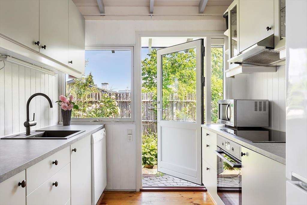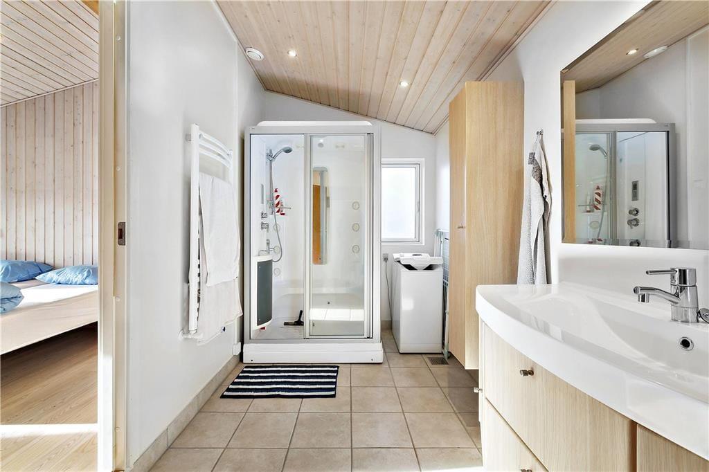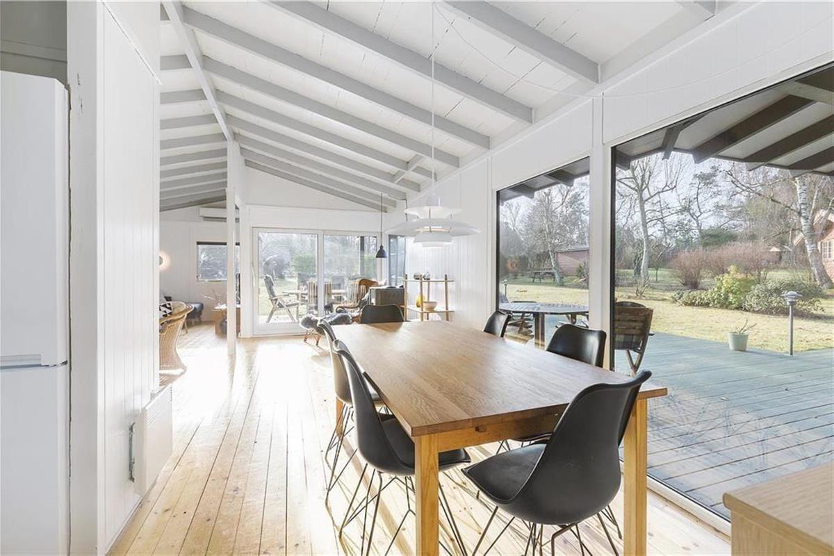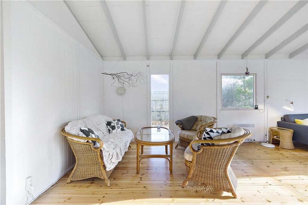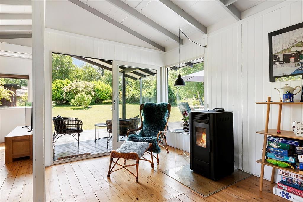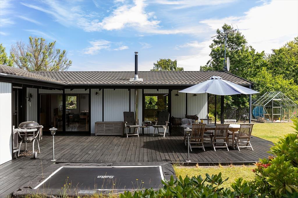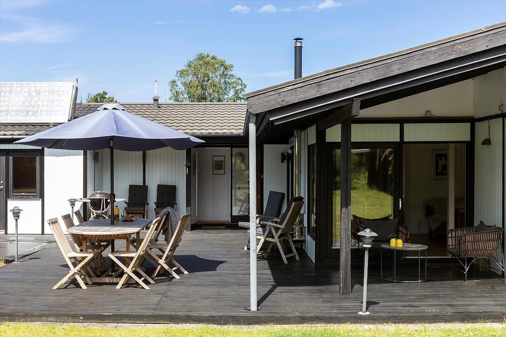 Draußen erwartet dich ein großer, grüner Garten mit Bäumen, Sträuchern und einer Rasenfläche, die perfekt für Ballspiele und Spaß geeignet ist. Der Garten lädt auch zur Entspannung ein, wo du Rehe vorbeiziehen sehen und am Morgen den Gesang der Vögel hören kannst. Die große Terrasse ist teilweise überdacht, sodass du die langen Sommerabende bei jedem Wetter genießen kannst. Hier ist Platz für Grillabende, Entspannung und gemütliche Stunden an der frischen Luft. Vom Haus aus führt ein kleiner Pfad direkt zur Strandtreppe, die hinunter zu einem kinderfreundlichen Strand mit hervorragenden Bademöglichkeiten führt – ideal für die ganze Familie.