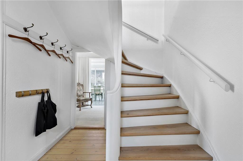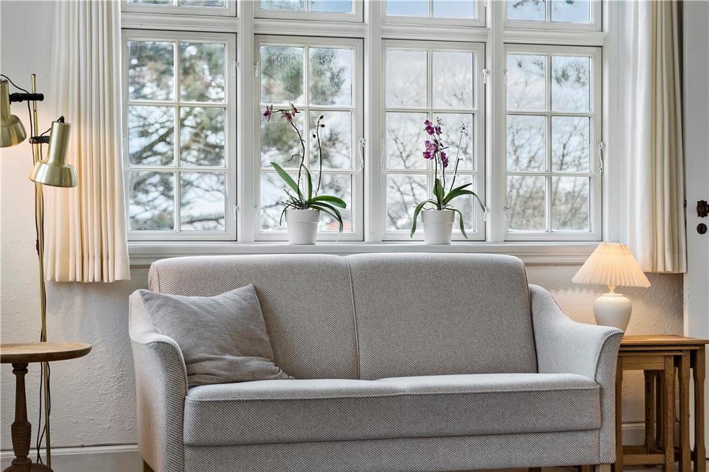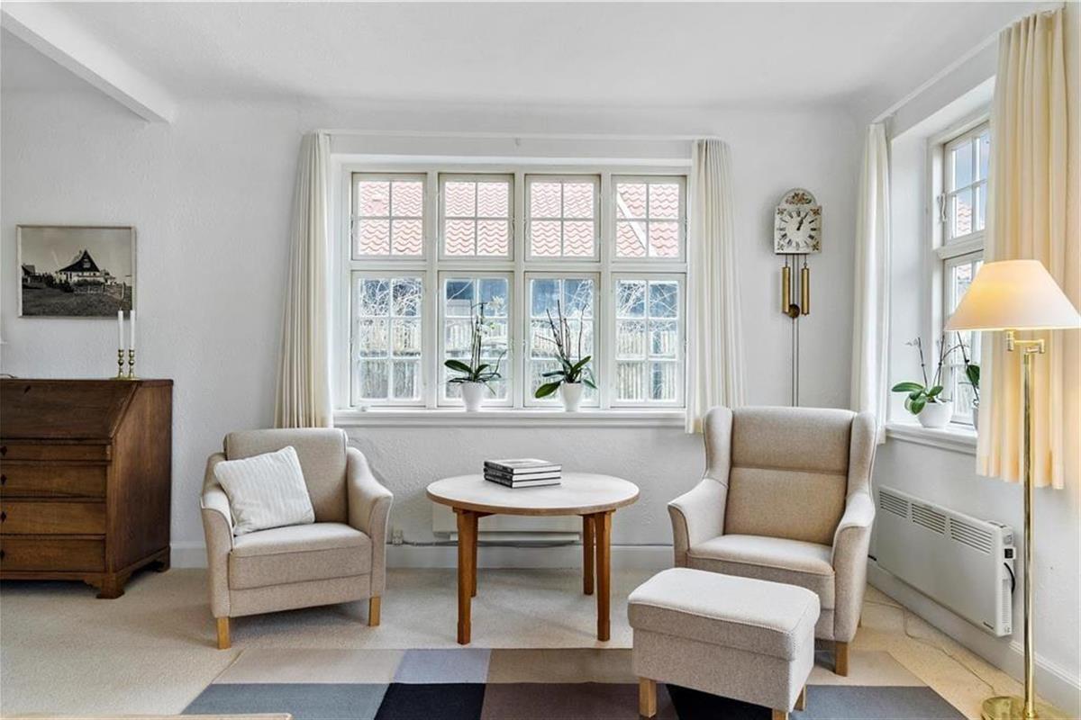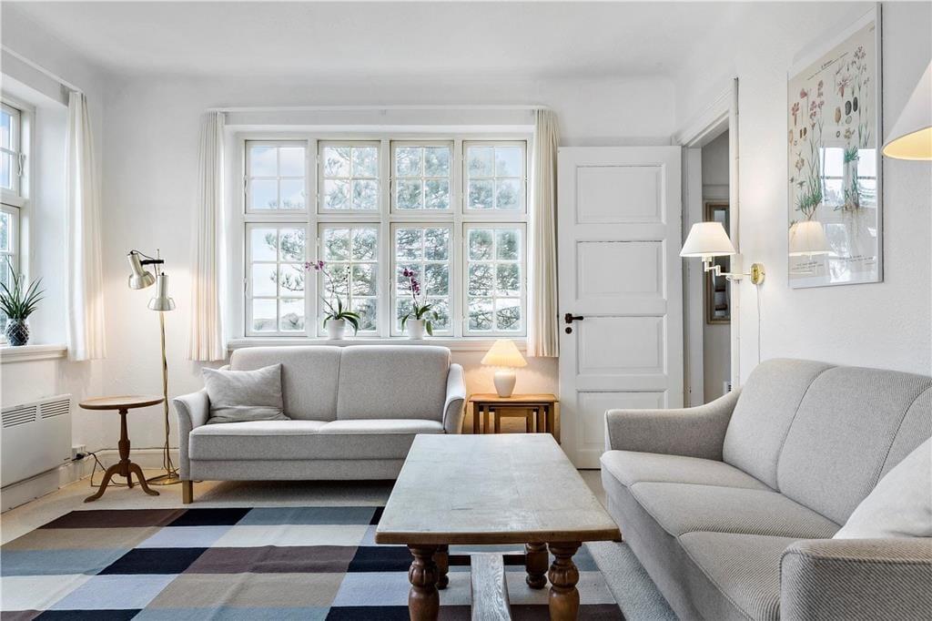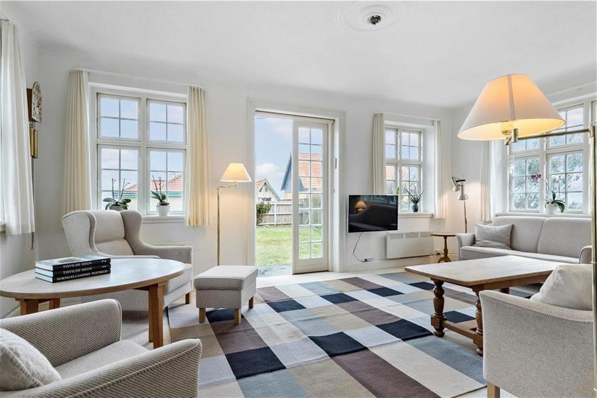 Die Außenbereiche sind darauf ausgelegt, das dänische Sommerleben in vollen Zügen zu genießen. Von der Terrasse zwischen Wohnzimmer und Wintergarten können Sie den Blick über die Wellen des Meeres schweifen lassen, während Sie eine Tasse Kaffee oder ein Glas Wein genießen. Beim Anbau gibt es eine große, südwestlich ausgerichtete Terrasse, auf der die Sonne von spätem Vormittag bis zum Sonnenuntergang scheint, ideal zum Sonnenbaden oder für Abendessen im Freien. Von hier aus können Sie auch die Kinder im Auge behalten, während sie im Spielhaus spielen oder auf der Schaukel im Garten schaukeln.