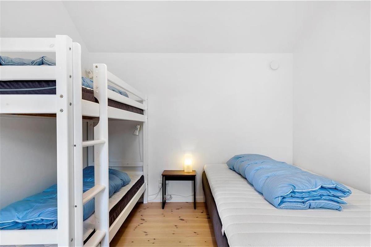 Betreten Sie das einladende Wohnzimmer, wo komfortable Sitzmöglichkeiten eine gemütliche Atmosphäre schaffen, perfekt für entspannte Momente mit einem guten Buch oder gemütliche Gespräche. Die separate Küche bietet die Möglichkeit, köstliche Mahlzeiten zuzubereiten, die im hellen Wintergarten mit Essbereich und direktem Zugang zu einer südlich ausgerichteten Terrasse genossen werden können. Von hier aus können Sie auch den herrlichen Meerblick genießen. Das geräumige Badezimmer ist mit Fußbodenheizung ausgestattet und hat einen Ausgang zum Sonnenhof, was es einfach macht, nach einer erfrischenden Dusche in die Morgensonne zu treten. Im ersten Stock befinden sich die Schlafzimmer: ein Zimmer mit Doppelbett, eines mit zwei Einzelbetten und ein kleineres Zimmer mit einem schmalen Einzelbett, alle eingerichtet für einen erholsamen Schlaf nach einem erlebnisreichen Tag. Im gemütlichen Anbau gibt es einen Eingangsbereich, ein Zimmer mit einem Einzelbett und einem Etagenbett sowie ein weiteres Zimmer mit einem Doppelbett. Das Anbau-Badezimmer mit Fußbodenheizung sorgt für zusätzlichen Komfort.