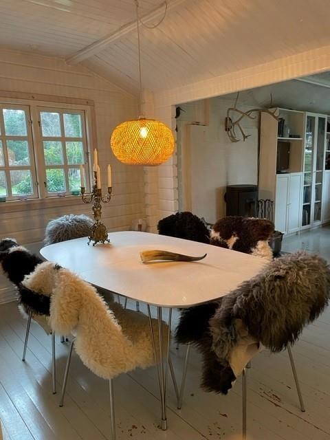 Betrete dieses einladende Ferienhaus, in dem Komfort und Urlaubsatmosphäre Hand in Hand gehen. Das Herzstück des Hauses ist das Wohnzimmer mit einem gemütlichen Essbereich, einem Kaminofen, der an kühleren Tagen wohlige Wärme verbreitet, und direktem Zugang zur Terrasse. Die separate Küche ist funktional eingerichtet und verfügt über einen eigenen Ausgang, sodass du den Morgenkaffee problemlos mit nach draußen nehmen kannst.
