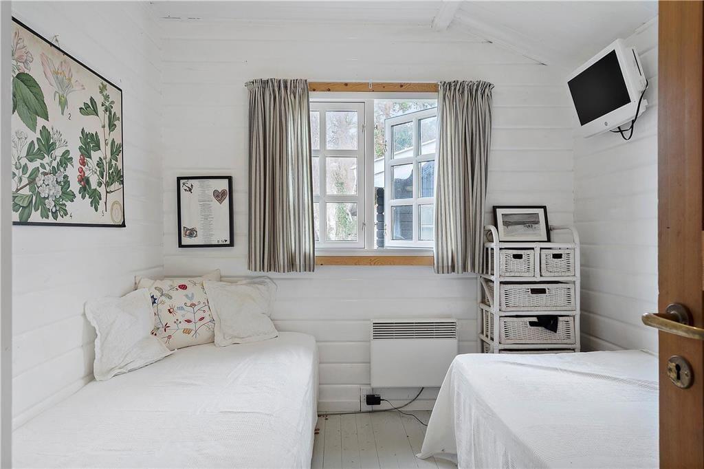 Der Schlafbereich des Hauses bietet ein Schlafzimmer mit einem Doppelbett und ein weiteres Zimmer mit zwei Einzelbetten – beide mit einer ruhigen Atmosphäre, die zur Entspannung einlädt. Das Badezimmer ist mit einer Dusche ausgestattet, perfekt, um sich nach einem Tag am Strand frisch zu machen. Im gemütlichen Gästehaus (Annex) befindet sich ein weiteres Schlafzimmer mit einem Doppelbett – ideal für Gäste oder Teenager, die etwas mehr Privatsphäre wünschen.