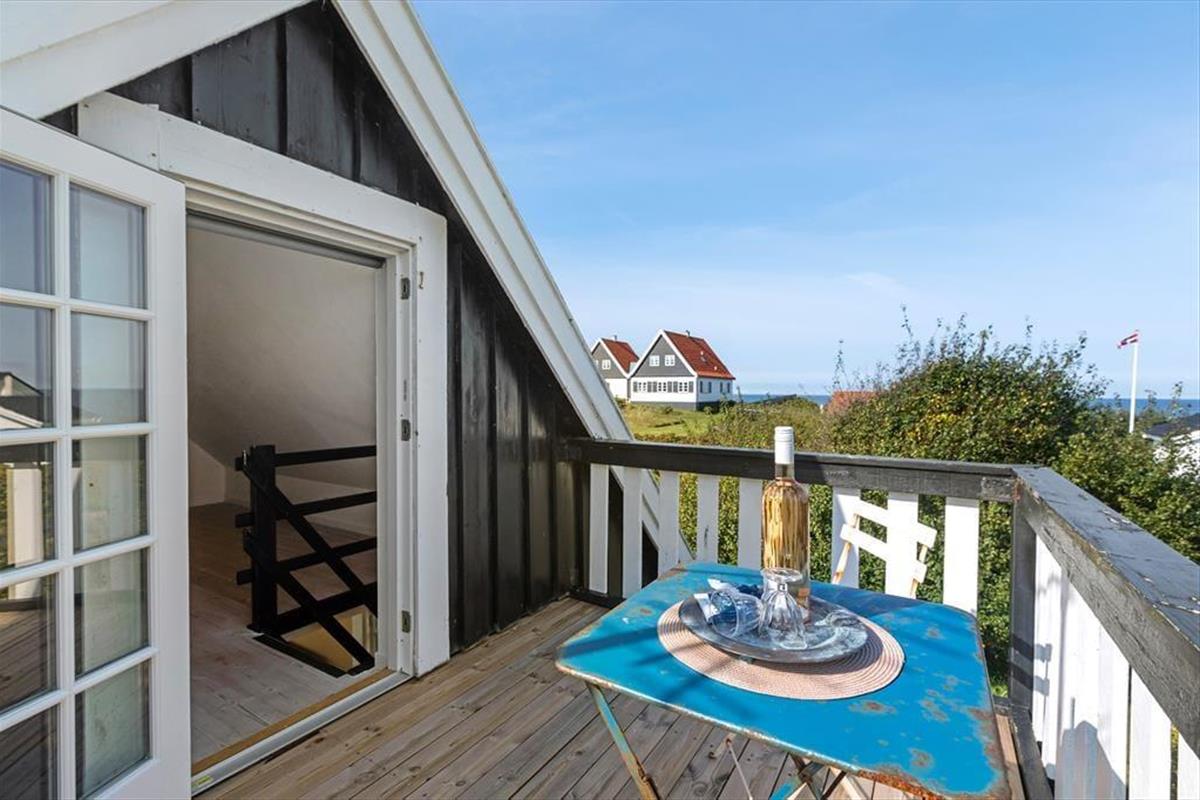 Fra stuen fører en smal trappe op til første sal, hvor der er to soverum med en dobbeltseng og to enkeltsenge samt udsigt over vandet fra balkonen. Huset emner af autenticitet med lavt til loftet på første salen, hvilket understreger dets ægte, traditionelle charme.