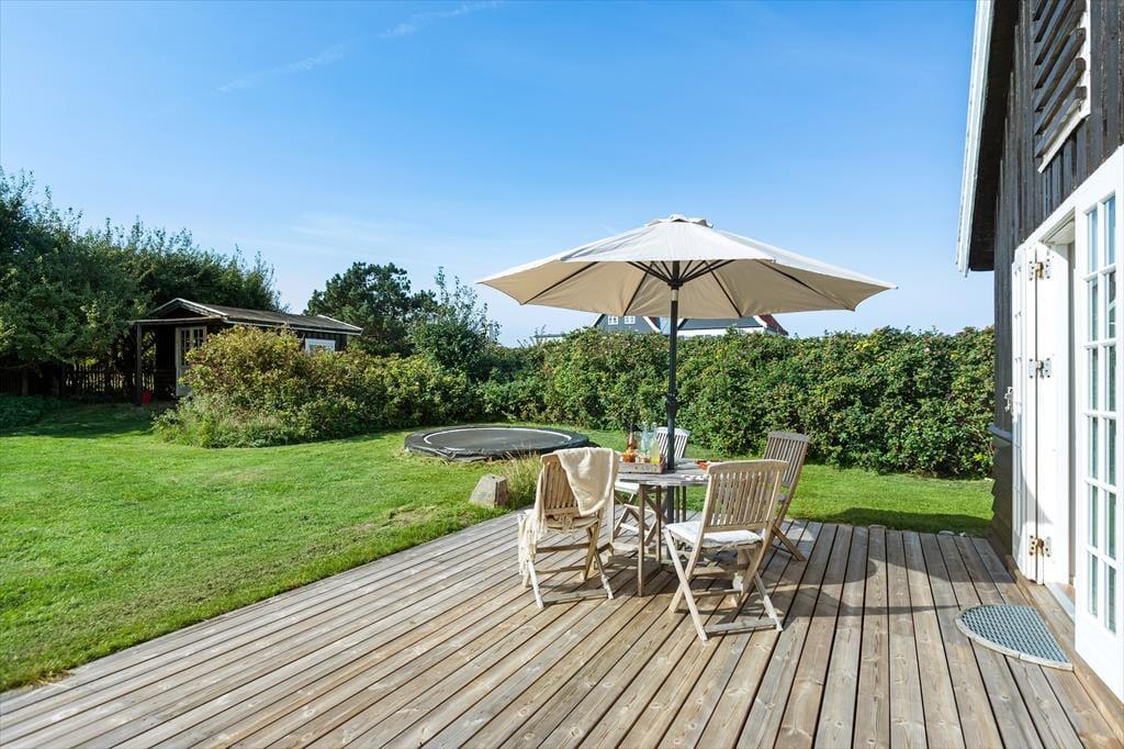 Haven byder på en dejlig terrasse med siddepladser, hvor man kan nyde morgenmaden i de rolige omgivelser. Fra balkonen kan man opleve de smukkeste solnedgange over vandet, hvilket skaber en helt særlig stemning. Den store grund giver masser af plads til udendørs leg og aktiviteter, og det er det perfekte sted for familier, der ønsker at tilbringe tid i naturen og nyde den friske luft.