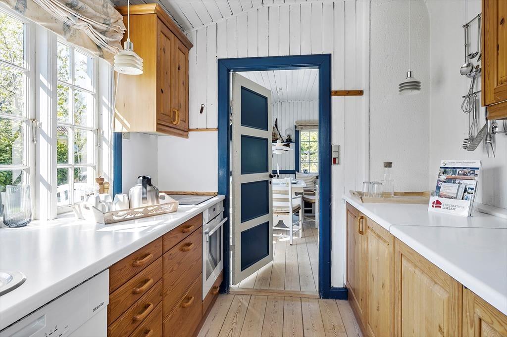 Das Ferienhaus verfügt über vier Schlafzimmer – drei mit Doppelbetten und eines mit einem Etagenbett. Die Zimmer sind einfach und funktional eingerichtet und sorgen für eine erholsame Nachtruhe nach einem Tag voller Strandspaziergänge und Erkundungstouren in der wunderschönen Natur Nordseelands. Die funktionale Küche bietet alles, was du für die Zubereitung leckerer Mahlzeiten benötigst, und der Essbereich hat genügend Platz für gemeinsame Mahlzeiten mit Familie und Freunden. Das geräumige Badezimmer ist mit einer Dusche ausgestattet.