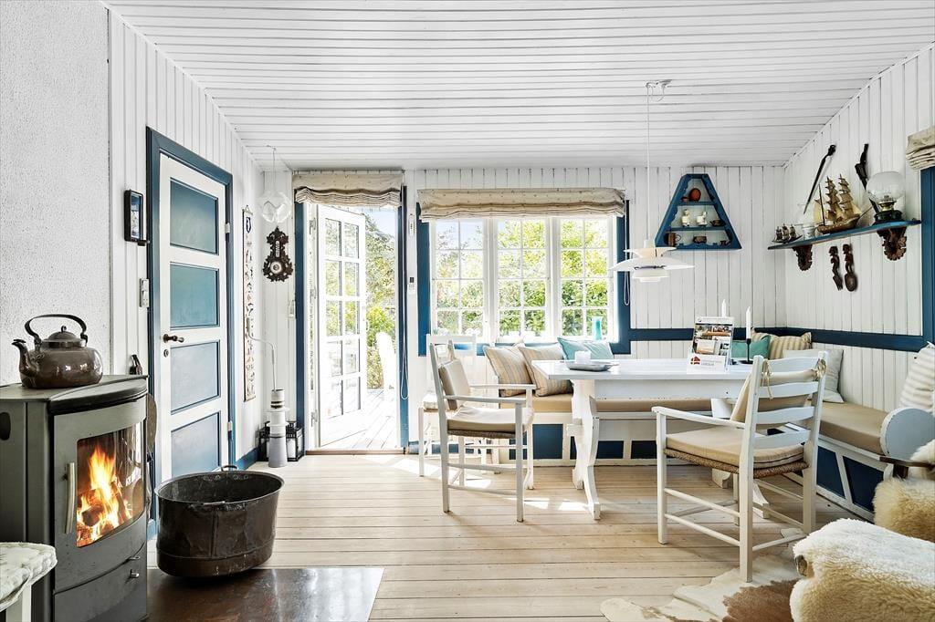 Betrete dieses klassische Ferienhaus, das mit seinem nostalgischen Charme und authentischen Ferienhausstil die perfekte Kulisse für entspannte Urlaubstage bietet. Hier herrscht eine idyllische Sommeratmosphäre, und das großzügige Wohnzimmer lädt mit seinem Kamin zu gemütlichen Abenden ein.