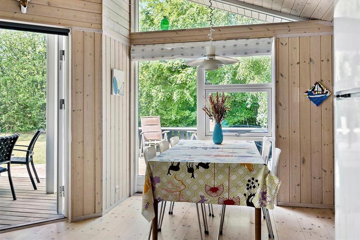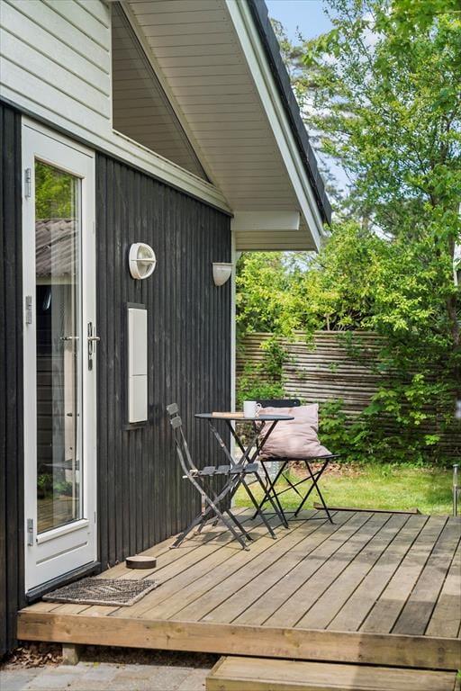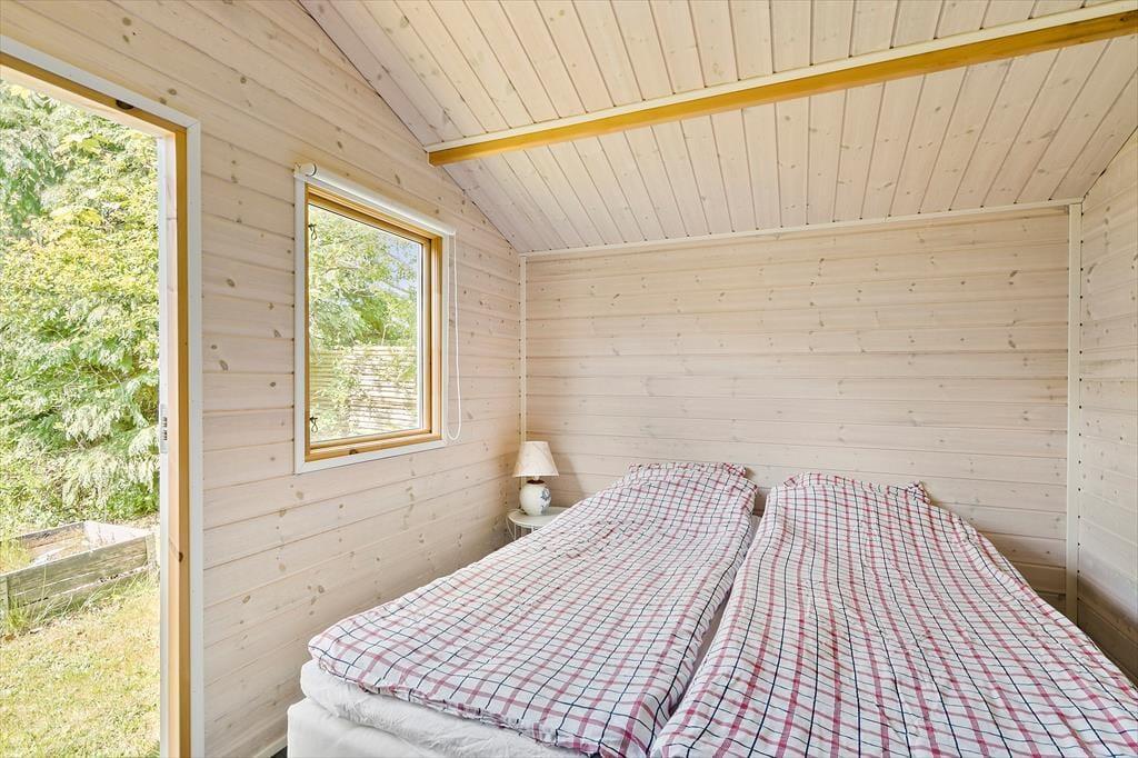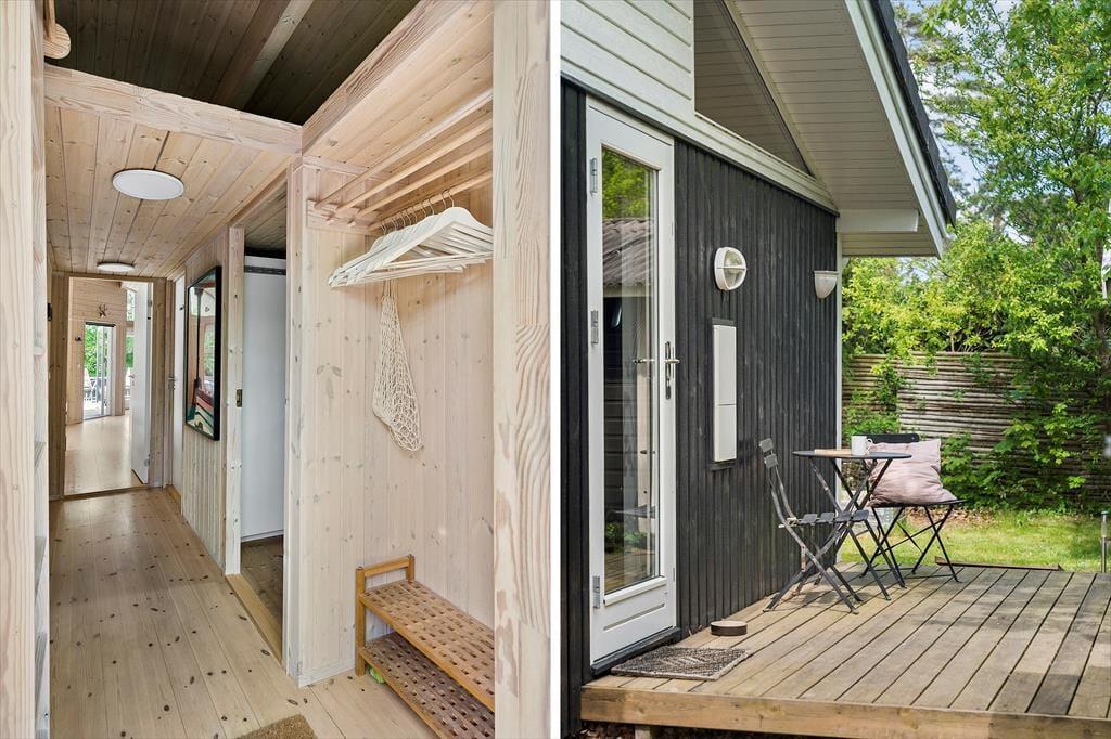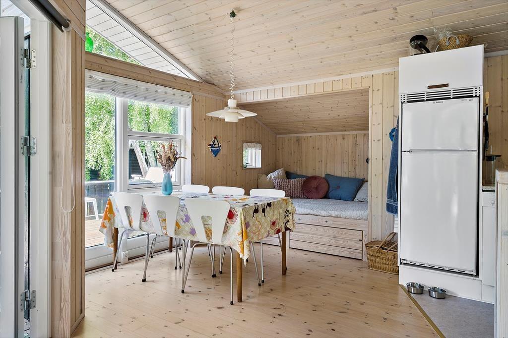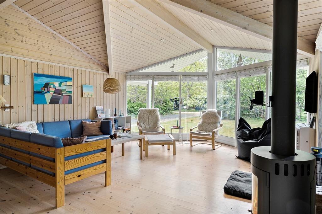 Die gemütliche Einrichtung schafft eine warme und einladende Atmosphäre, in der sich die ganze Familie wohlfühlen kann. Das Ferienhaus verfügt zudem über einen offenen Dachboden, der zusätzliche Schlafplätze bietet und eine unterhaltsame Schlaferfahrung für die Jüngsten ermöglicht. Die großen Fenster lassen viel Licht herein und sorgen für eine harmonische Verbindung zur Natur. Von hier aus gelangst du direkt auf die schöne Holzterrasse.
