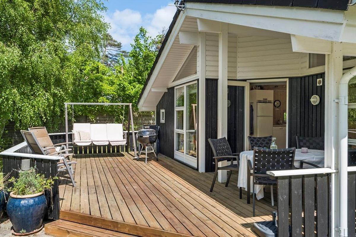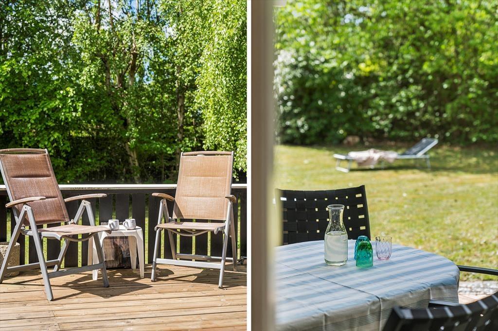 Die großzügige Holzterrasse ist teilweise überdacht, sodass du sowohl die Sonne genießen als auch ein schattiges Plätzchen finden kannst. Sie eignet sich perfekt für ein entspanntes Frühstück oder lange Grillabende mit der Familie.