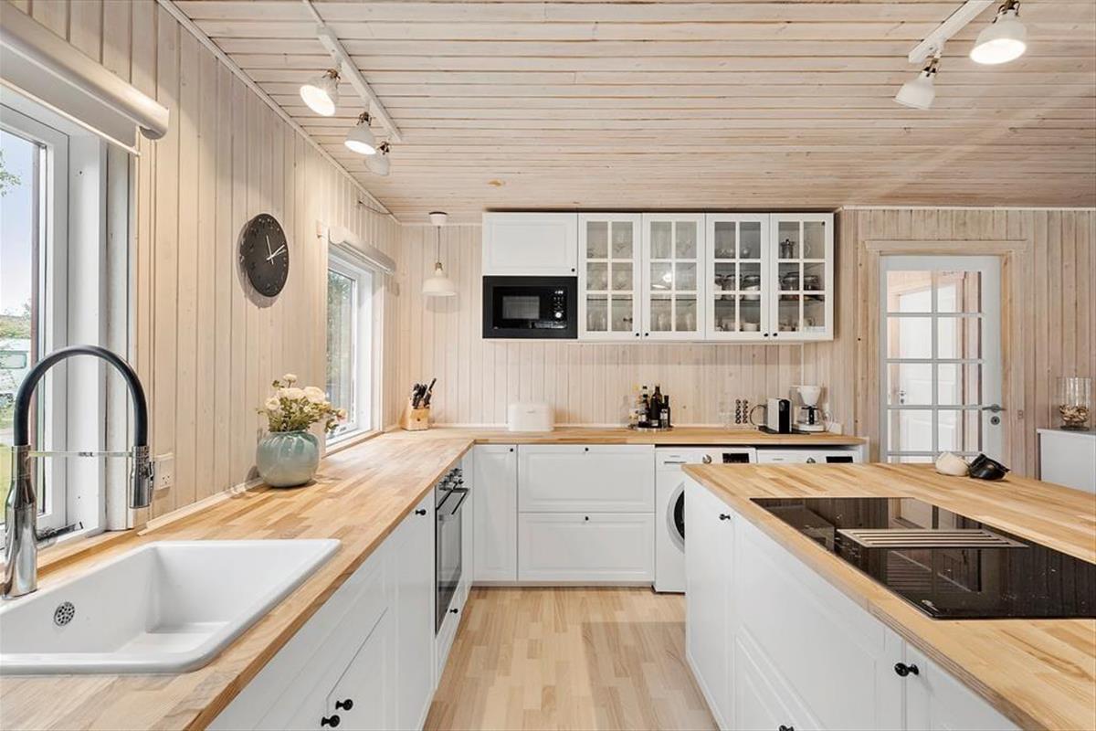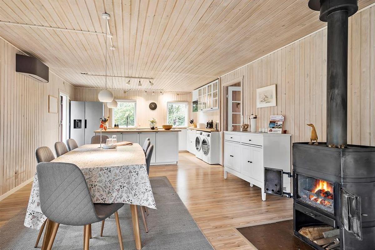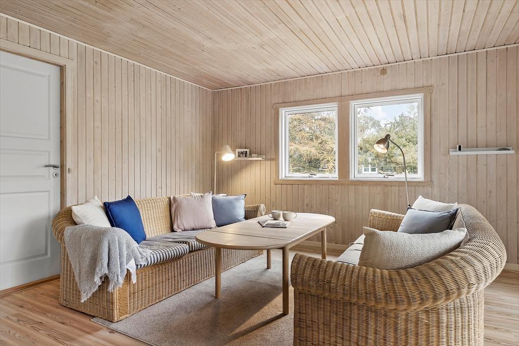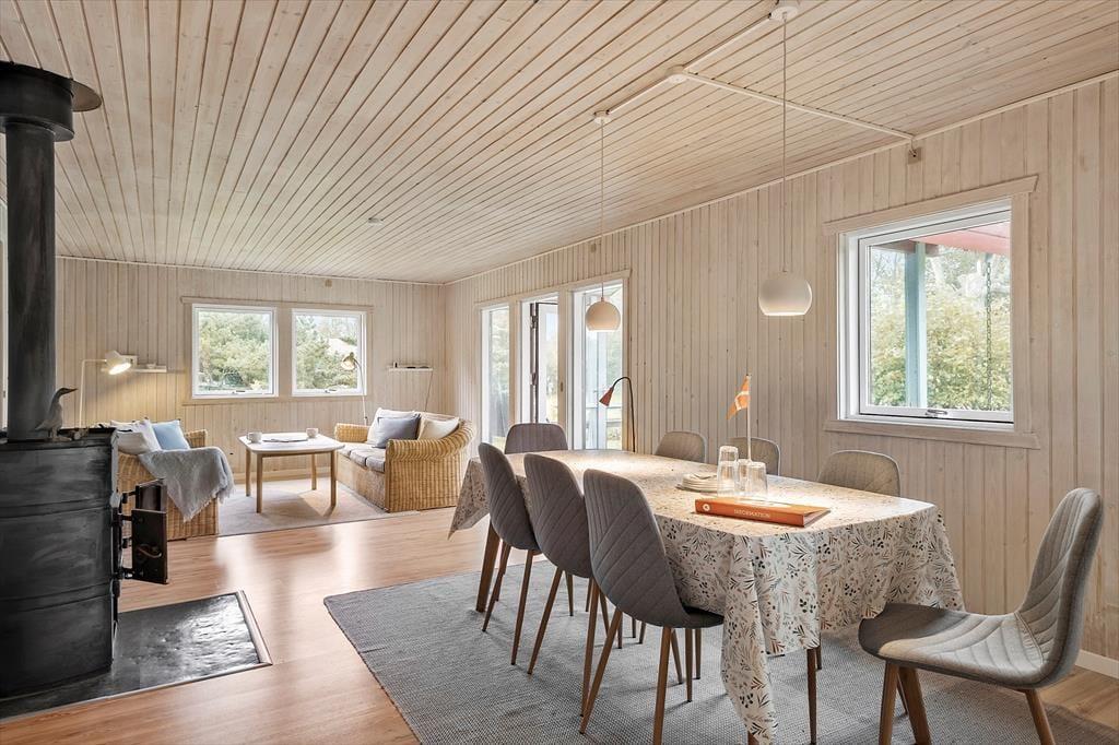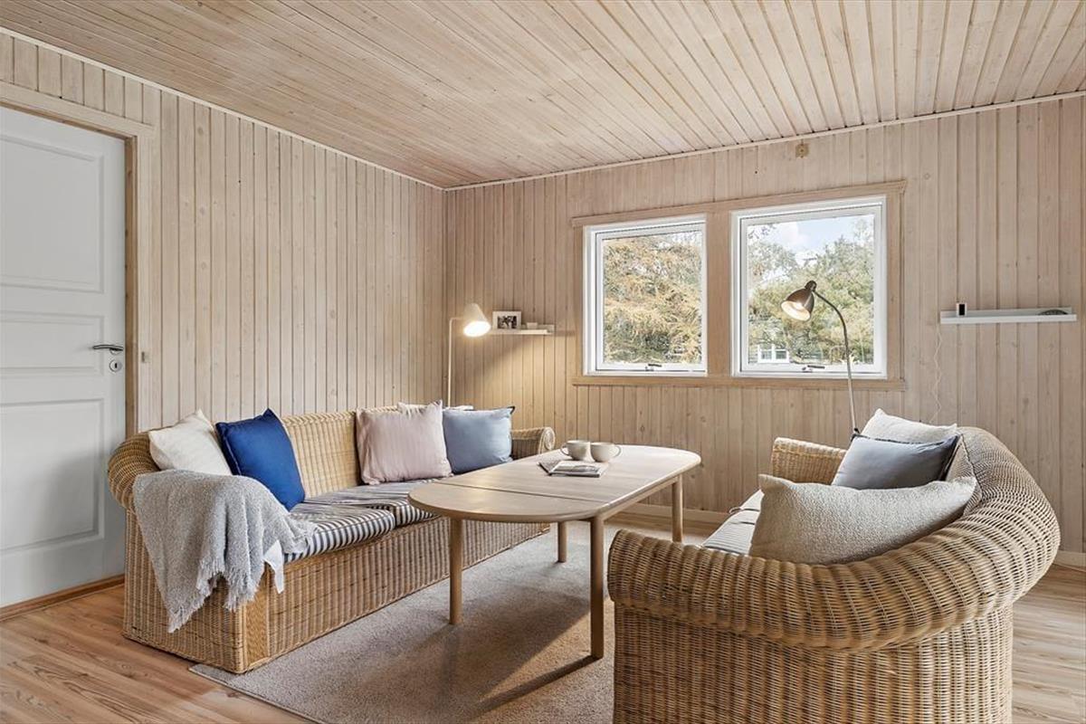 Dieses charmante Ferienhaus bietet eine gemütliche und entspannte Atmosphäre im Herzen von Liseleje. Das geräumige Wohnzimmer und die offene Küche laden zu gemeinsamen Stunden mit Familie und Freunden ein. Im hellen Wohnbereich gibt es eine gemütliche Sofaecke zum Entspannen und eine Essecke für lange Abende mit gutem Essen und Brettspielen. Von hier aus gelangst du direkt auf die Terrasse, wo du deinen Morgenkaffee genießen oder laue Sommerabende verbringen kannst.