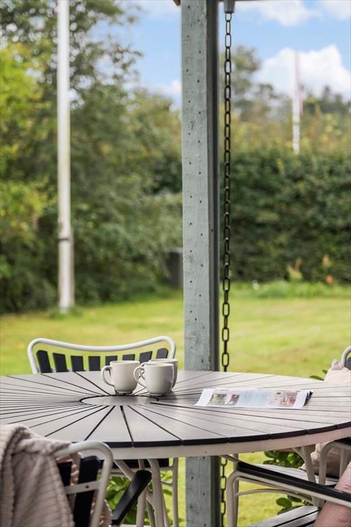 Auf der Terrasse kannst du im Freien essen, die Sommerabende beim Grillen genießen und die entspannte Atmosphäre auskosten. Ob in der Sonne oder im Schatten unter den Bäumen – der Garten bietet den perfekten Rahmen für entspannte Ferientage.