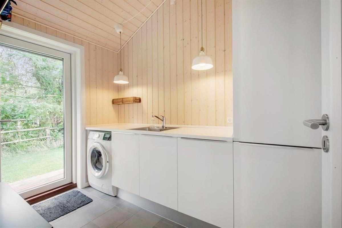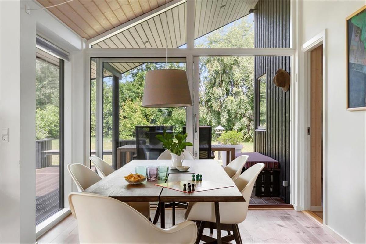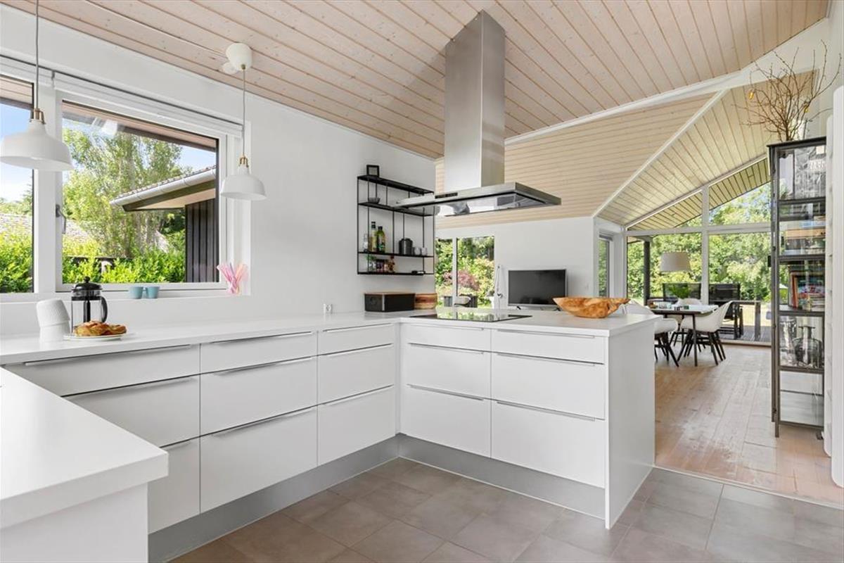 Ein schönes und modernes Sommerhaus aus dem Jahr 2018, das zu purer Urlaubsatmosphäre einlädt. Das Sommerhaus verfügt über eine schöne helle Wohnküche, in der sich die Familie zum Essen und für angenehme Momente treffen kann. Das geräumige Wohnzimmer lädt mit seinem gemütlichen Holzofen und dem Zugang zur Terrasse zum Entspannen ein und lässt die Natur ganz nah kommen.