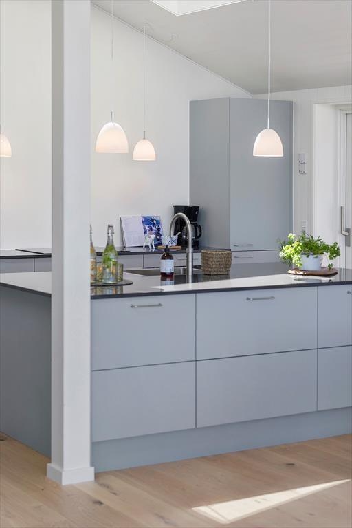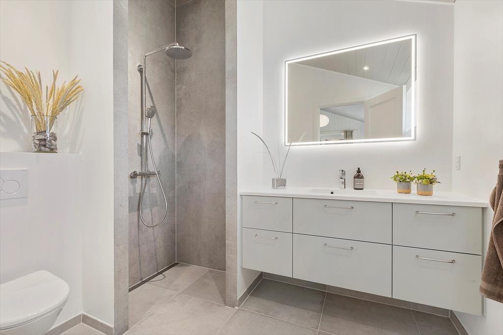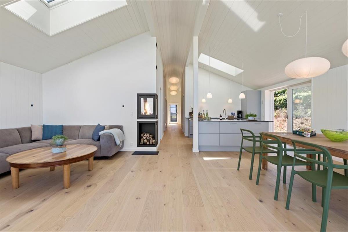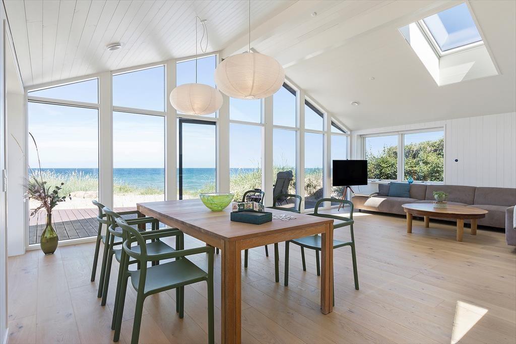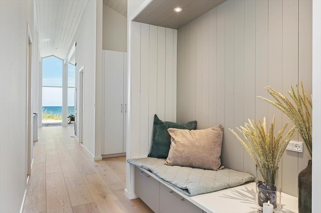 Willkommen in diesem außergewöhnlichen, neu gebauten Ferienhaus am Strand von Liseleje. Wenn Sie eintreten, werden Sie sofort die moderne und stilvolle Einrichtung bemerken, die eine einladende Atmosphäre schafft. Das Haus ist mit großen Panoramafenstern gestaltet, die den herrlichen Meerblick ins Wohnzimmer und weiter durch das ganze Haus strömen lassen. Hier können Sie die atemberaubende Aussicht von der bequemen Couch im Wohnzimmer oder während der Zubereitung von Mahlzeiten in der gut ausgestatteten Küche genießen. Jedes Zimmer ist mit Fokus auf Komfort und Ästhetik eingerichtet, was den perfekten Rahmen für Gemütlichkeit und Entspannung schafft.