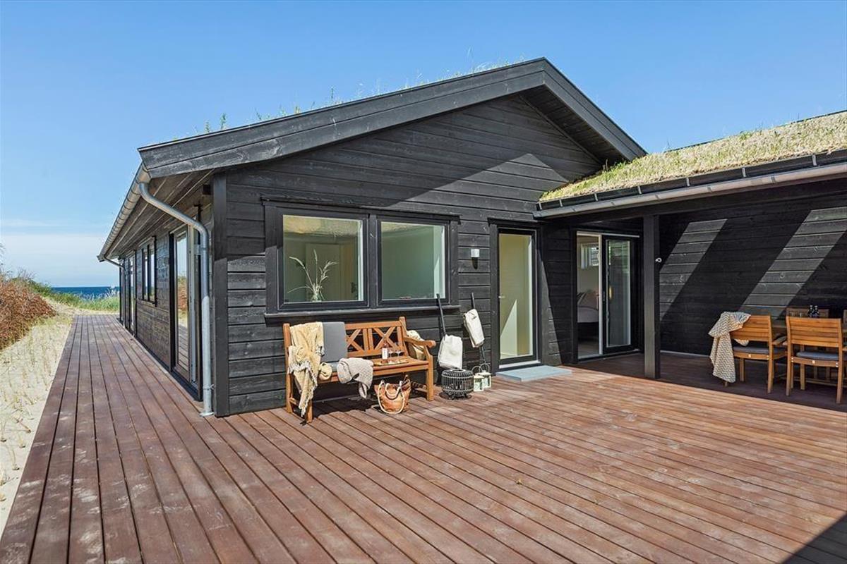 Treten Sie in den schönen Außenbereich des Ferienhauses, wo Sie viele Möglichkeiten haben, das Leben zu genießen. Die große Terrasse ist ideal zum Entspannen mit einer Tasse Kaffee am Morgen oder für gemütliche Grillabende mit Blick auf das Meer. Mit dem Strand direkt vor der Tür können Sie leicht einen erfrischenden Sprung ins Wasser nehmen, Muscheln sammeln oder einfach dem Klang der Wellen lauschen. Die langen, sonnigen Tage und die hellen Sommerabende bieten den perfekten Rahmen für Entspannung und gemütliche Momente mit Familie und Freunden.