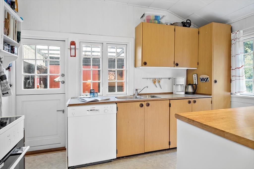 Dieses charmante Ferienhaus in Liseleje lädt zu entspannten Tagen mit der Familie in einer gemütlichen Atmosphäre ein. Das Wohnzimmer erstreckt sich über mehrere Ebenen und bietet gemütliche Ecken, in die du dich mit einem guten Buch zurückziehen oder einfach entspannen kannst. Der Essbereich grenzt an das Wohnzimmer und hat direkten Zugang zur Morgenterrasse, wo du den Tag mit einer frisch gebrühten Tasse Kaffee in der frischen Luft beginnen kannst. Die Küche ist vom Wohnzimmer getrennt und hat ihren eigenen Ausgang zu einem überdachten Innenhof. Die drei Schlafzimmer sorgen für erholsame Nächte nach einem erlebnisreichen Tag.