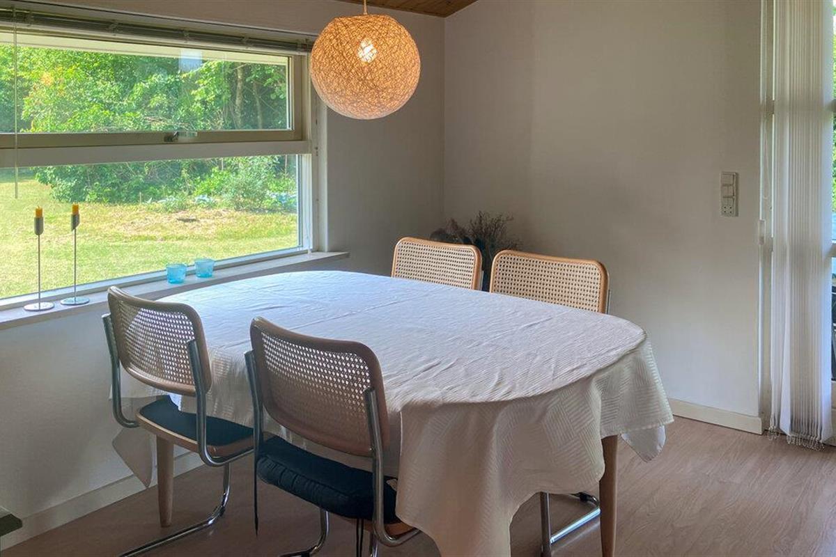Welkom in dit vriendelijke vakantiehuis, dat je verwelkomt met een gezellige woonsfeer. Geniet van je maaltijden met uitzicht op het groen, plan je activiteiten samen op de gezellige banken en ontspan na een lange dag in de frisse lucht met een harmonieuze spelletjesavond, terwijl de houtkachel voor extra gezelligheid zorgt.