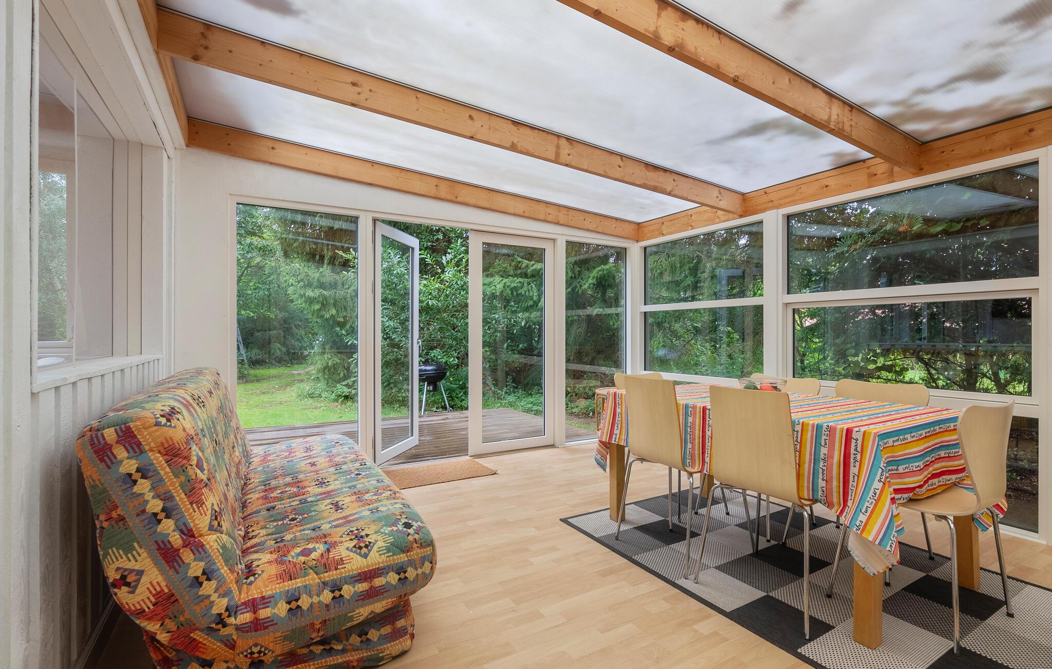 Geniet van de bijzondere rust in dit gezellige houten huis, dat prachtig omgeven is door hoge bomen op een open perceel. De grote ramen zorgen voor een aangename verbinding tussen de tuin en de kamers in het huis. Geniet van je vrije vakantietijd met leuke bordspellen en een kopje koffie. Geniet van het licht en de warmte in de prachtige serre voordat je de eettafel dekt voor het diner. Kijk uit naar vele gezellige uurtjes koken in de keuken en ontspannen op de zachte meubels in de woonkamer.