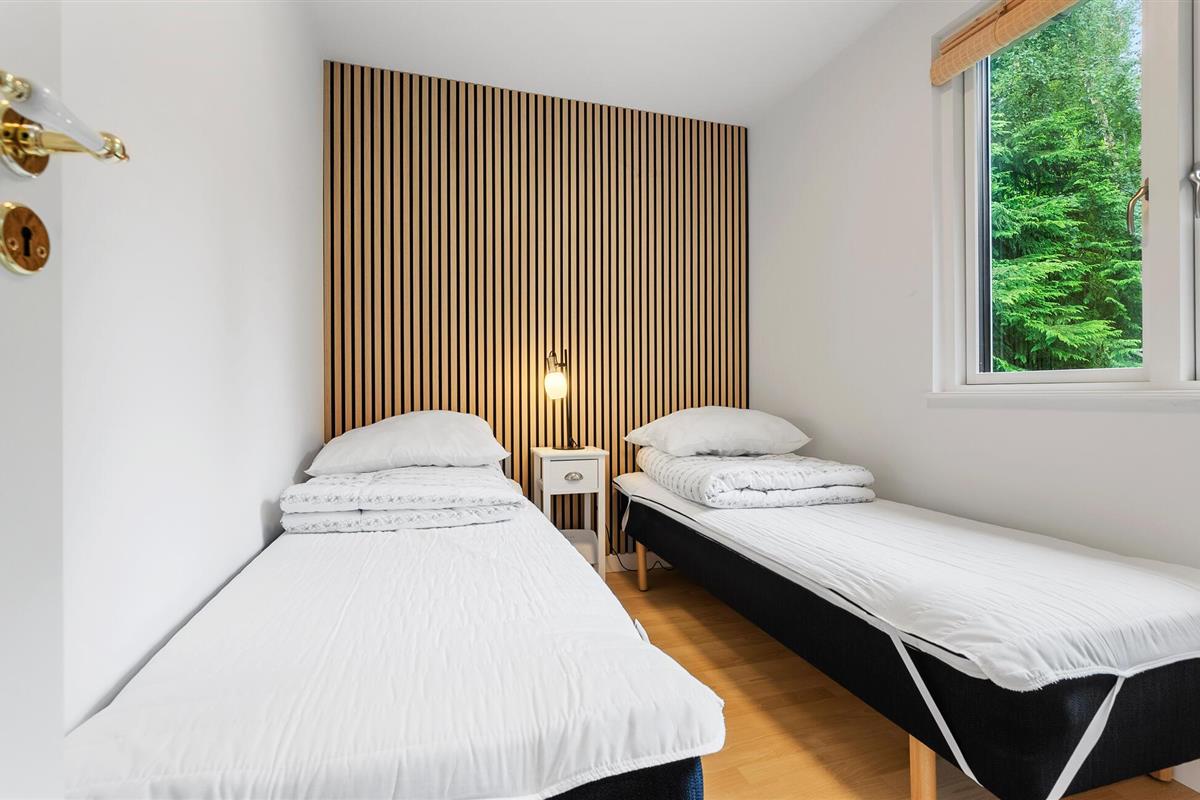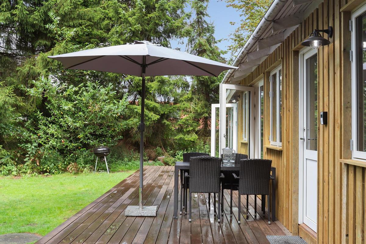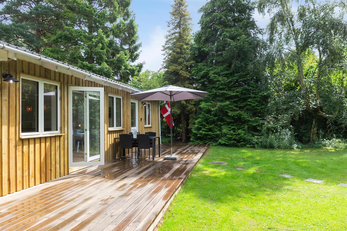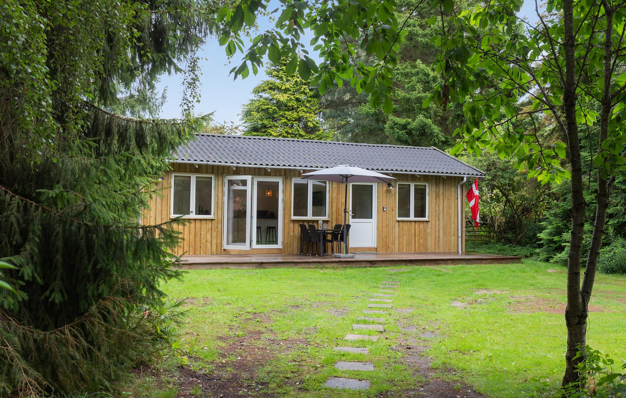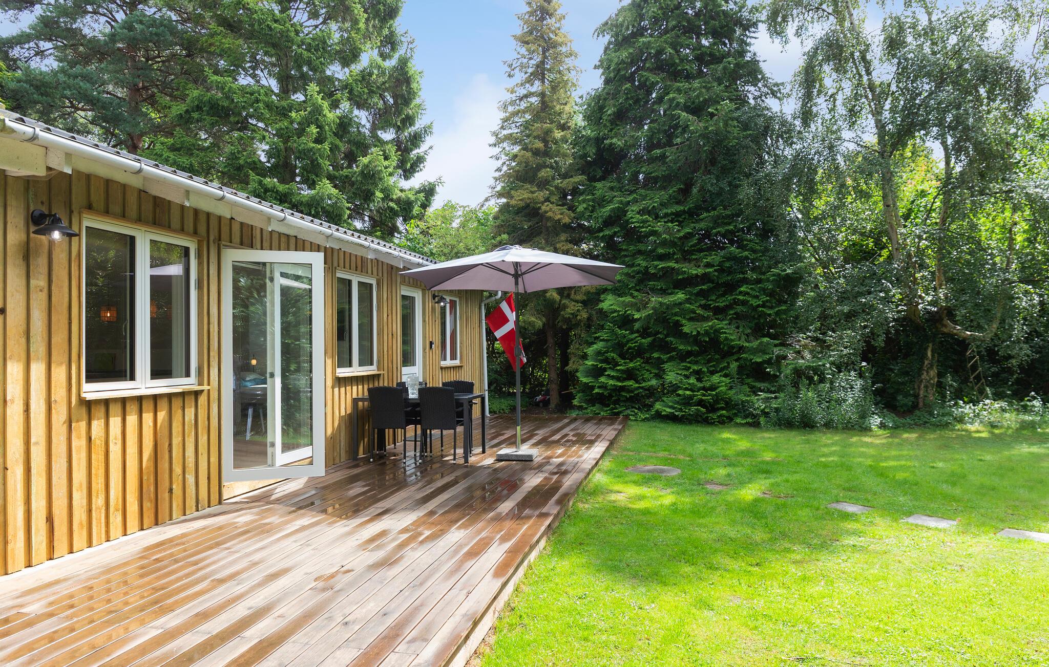 Rustig houten vakantiehuis omgeven door natuur, dichtbij kindvriendelijk strand in Liseleje, perfect voor ontspanning en avontuur.