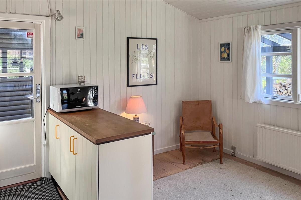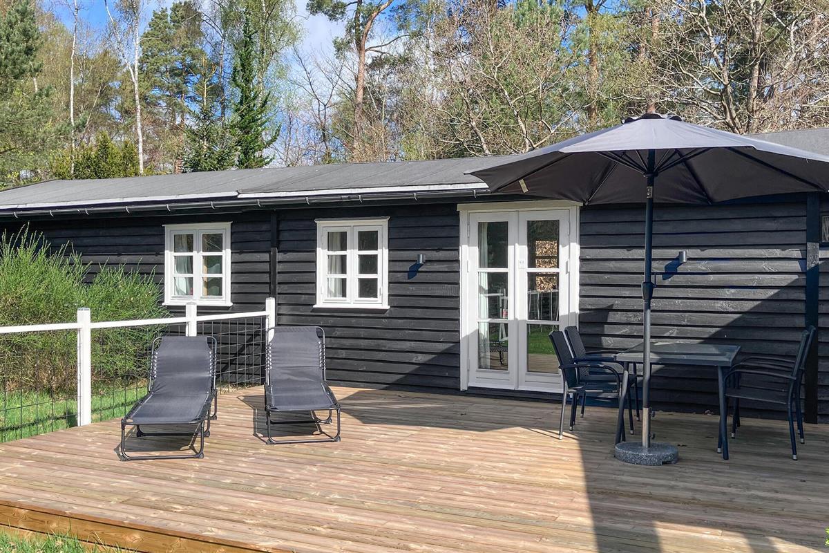 Charmant houten vakantiehuis bij Liseleje Strand, omgeven door groen en met veel privacy, ideaal voor een ontspannen verblijf.
