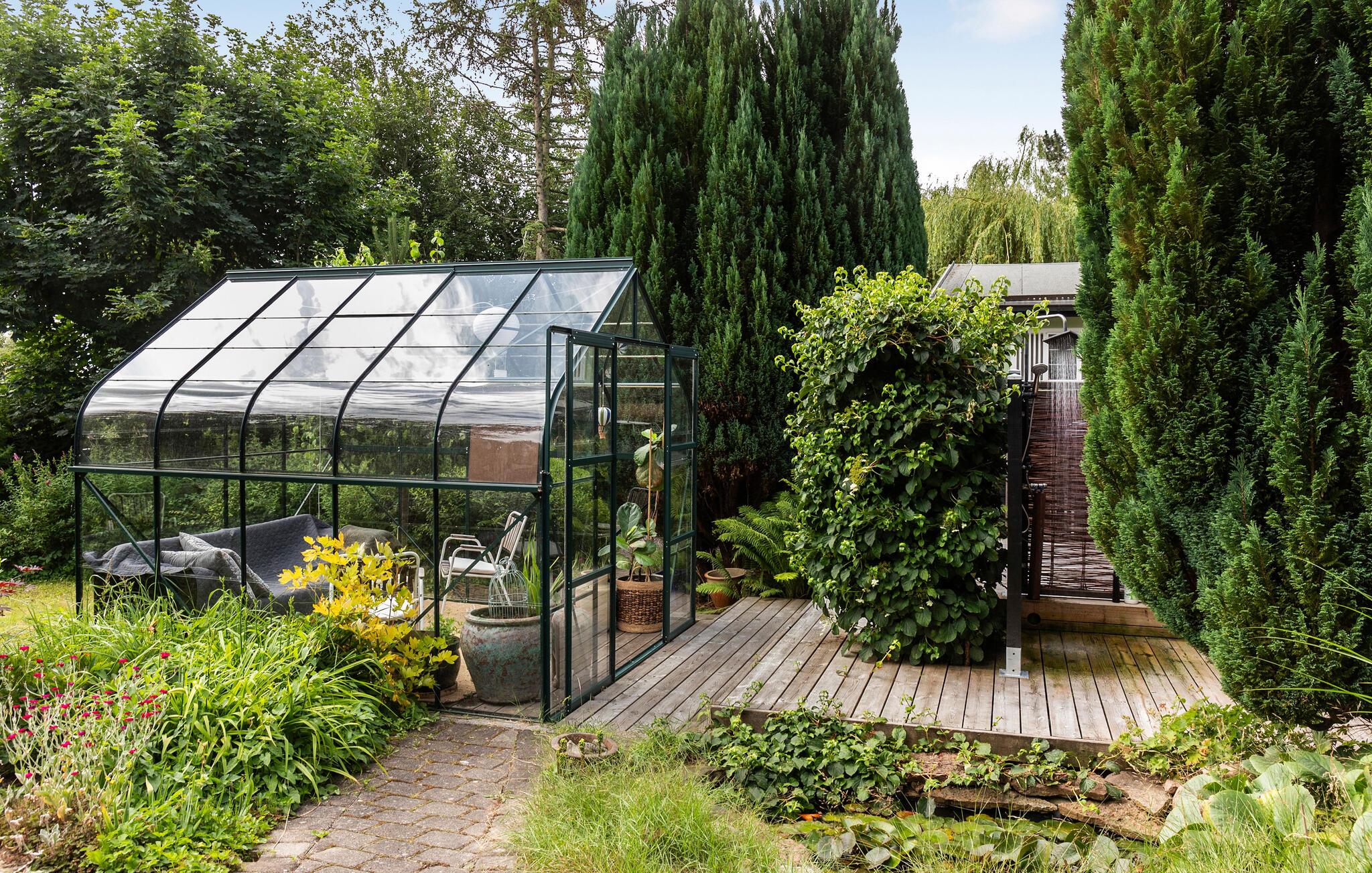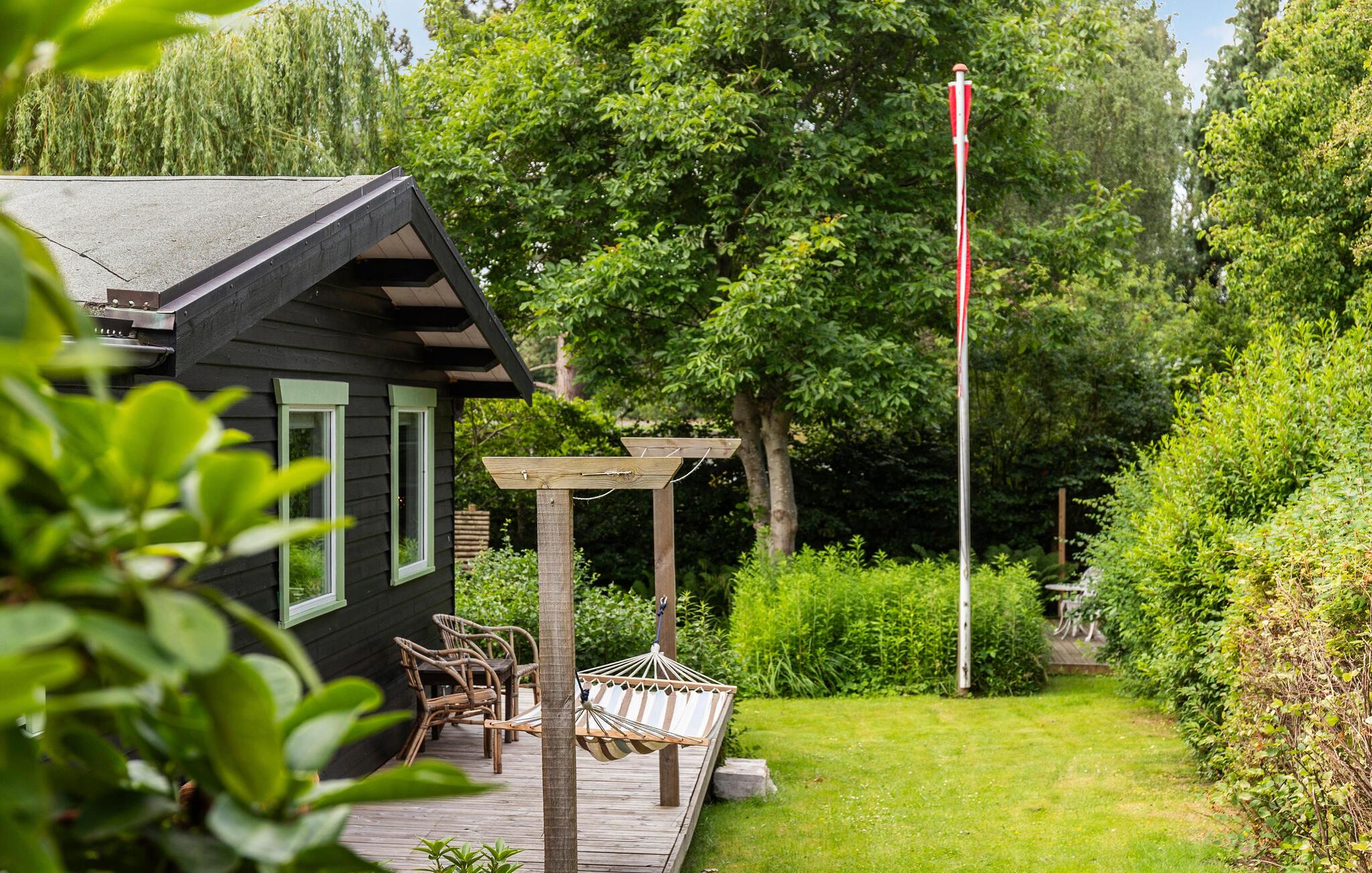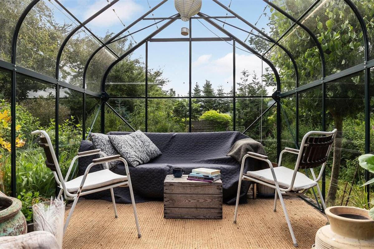 In de grote en mooi aangelegde tuin staat een liefdevol ingericht tuinhuisje met glazen wanden. Hier kun je, beschermd tegen weer en wind, genieten van het vrije uitzicht op het groen en de heerlijke rust. Op zonnige dagen kun je het jezelf gemakkelijk maken op het terras, terwijl je op koelere middagen ontspanning en warmte kunt vinden in de sauna.