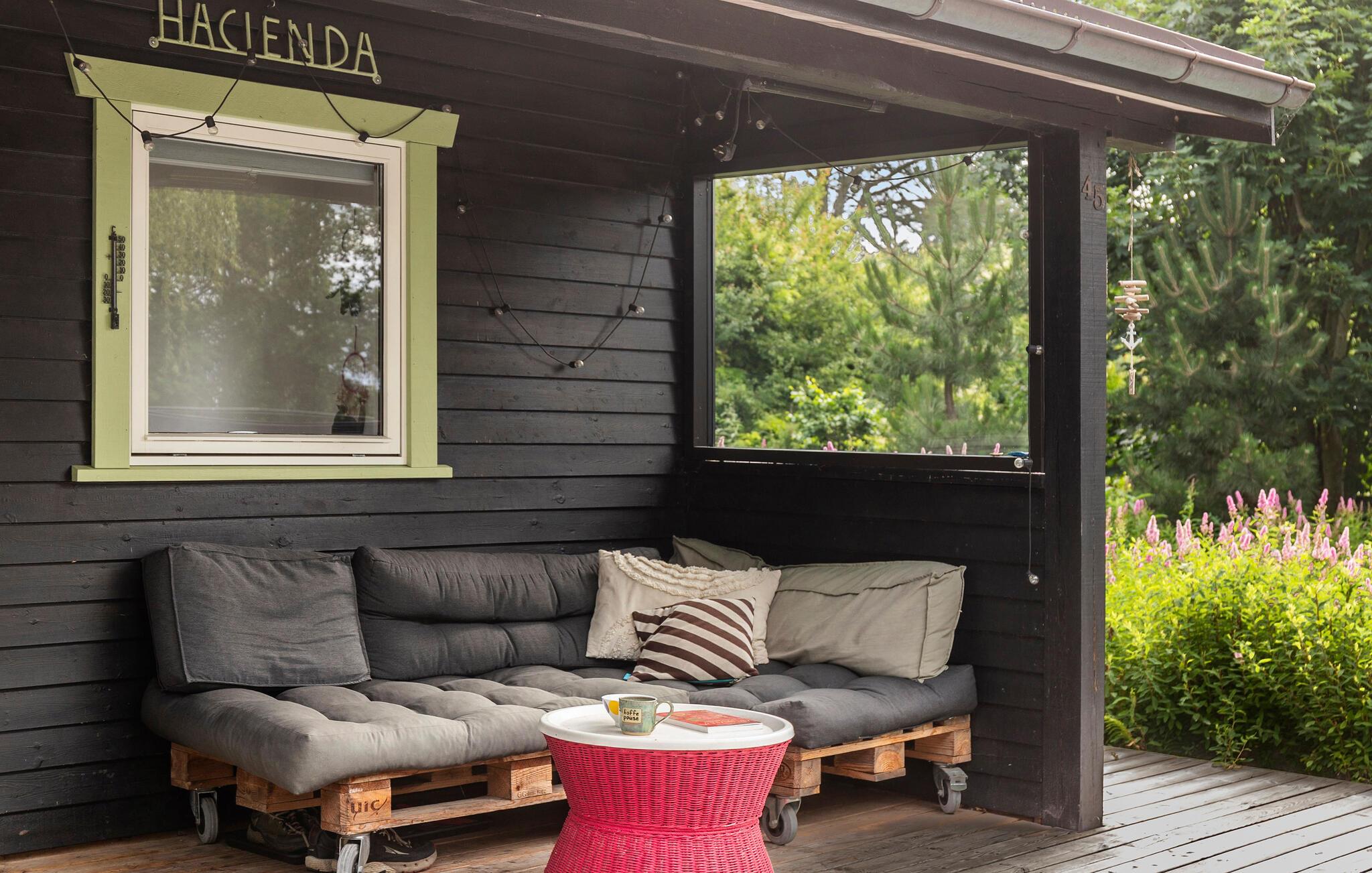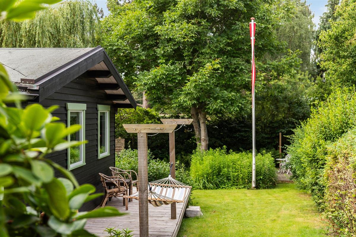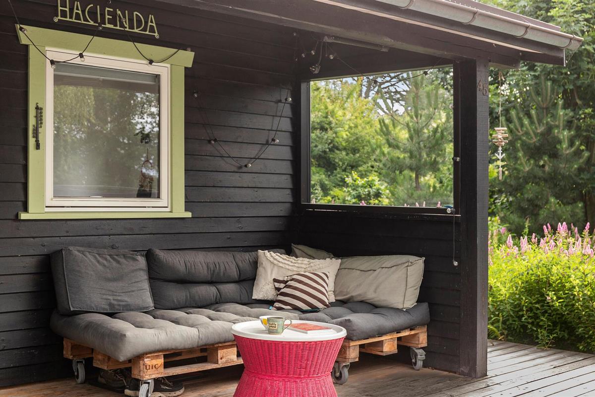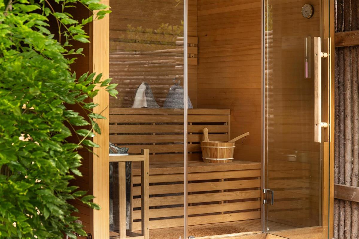 In de grote en mooi aangelegde tuin staat een liefdevol ingericht tuinhuisje met glazen wanden. Hier kun je, beschermd tegen weer en wind, genieten van het vrije uitzicht op het groen en de heerlijke rust. Op zonnige dagen kun je het jezelf gemakkelijk maken op het terras, terwijl je op koelere middagen ontspanning en warmte kunt vinden in de sauna.