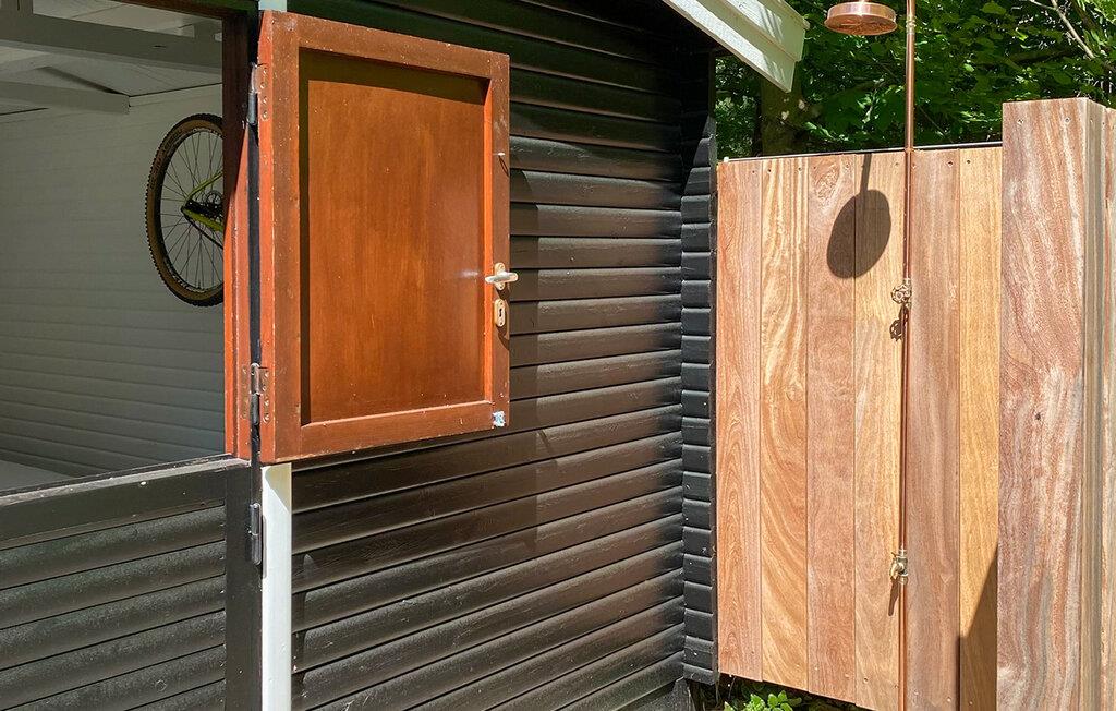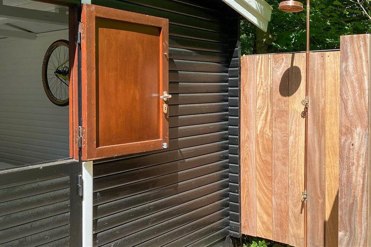 De buitenruimte is een waar natuurparadijs. Je kunt genieten van je ontbijt op het grote houten terras of de dag afsluiten met een glas wijn. Maak het jezelf gemakkelijk op de ligstoelen of ontspan in de overkapping, die je een unieke buitenervaring biedt. Je kunt hier ook overnachten. Een buitendouche zorgt voor een verfrissende afkoeling op warme dagen.