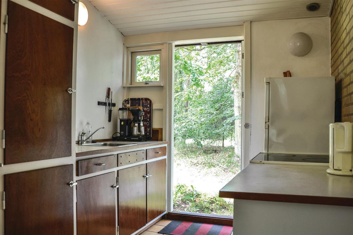 Dit kleine, eenvoudige vakantiehuis biedt je een gezellig toevluchtsoord midden in de natuur. De open woonkamer met toegang tot het overdekte terras nodigt je uit om te blijven hangen, ongeacht het weer. Hier kun je genieten van je maaltijden of een goede koffie omgeven door groen. Het omheinde terrein met diverse speeltoestellen maakt het huis bijzonder gezinsvriendelijk en biedt je ruimte voor ontspannende uren in de buitenlucht.