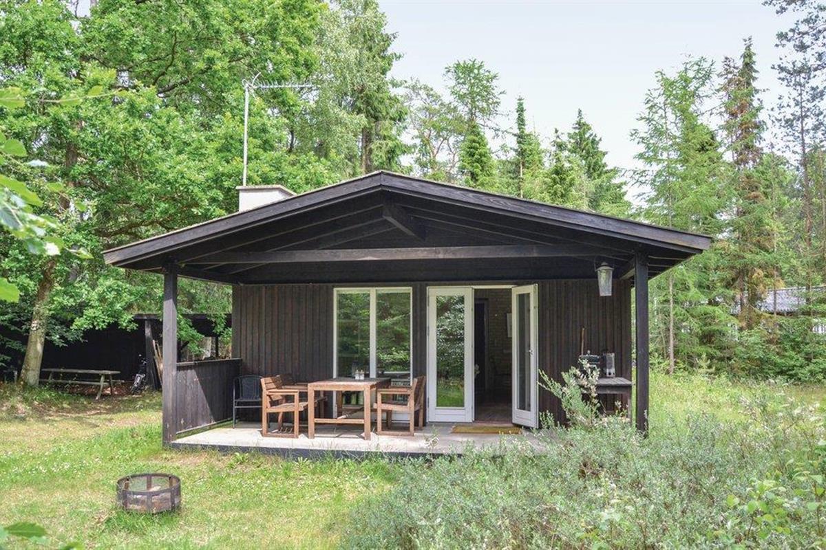 Gezellig vakantiehuis aan bosrand met overdekt terras en speeltoestellen, dicht bij kindvriendelijk strand en Frederiksværk.