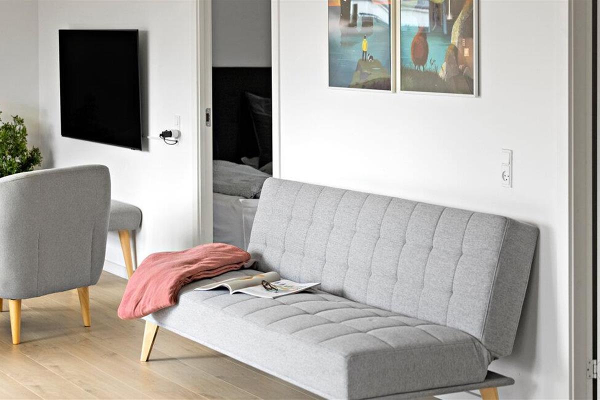 Stap door de openslaande deuren het grote houten terras op, vanwaar je een prachtig uitzicht hebt over de grote tuin met gazon. Terwijl je geniet van je koffie op het tuinmeubilair, kunnen je kleintjes rondrennen in de tuin, de trampoline ontdekken en de buitenruimte vullen met gelach. Voor de kinderen is er een leuke speeltuin bij het huis, die het tuinaanbod nog groter maakt.